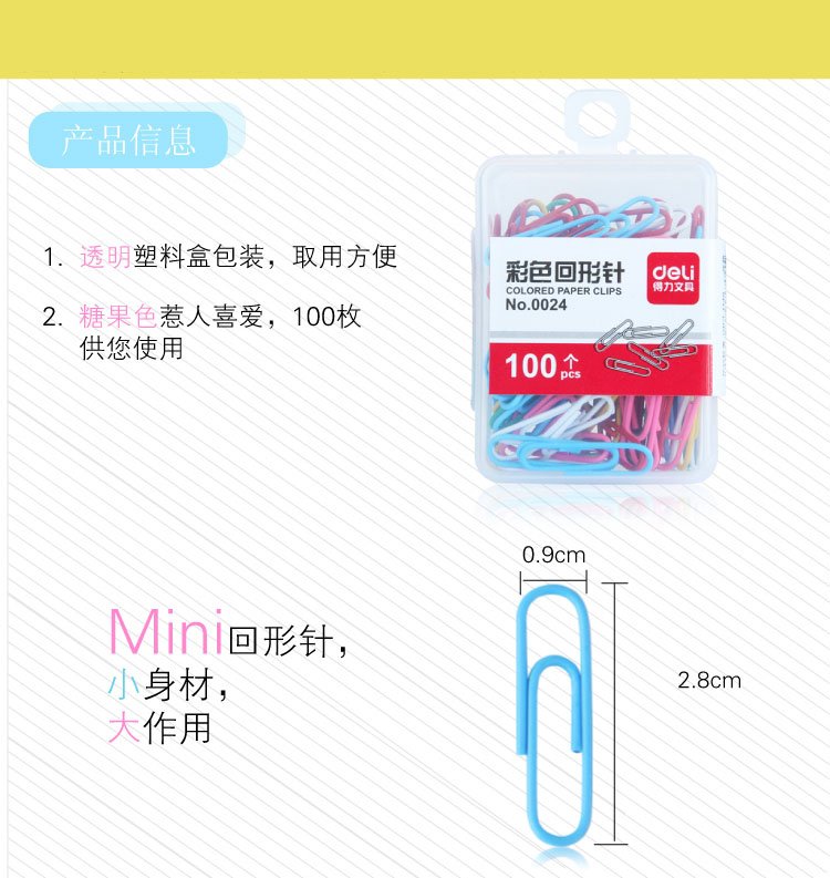 得力(deli) 0024-彩色回形针