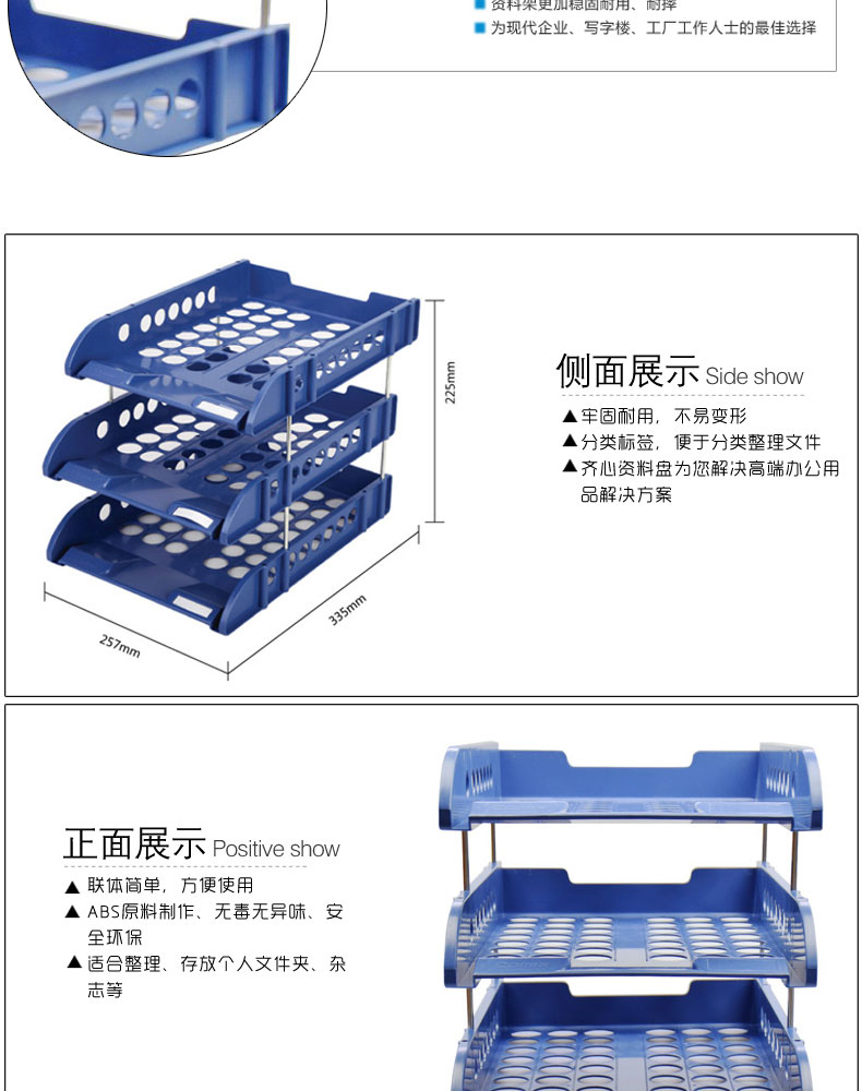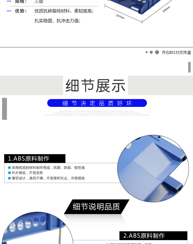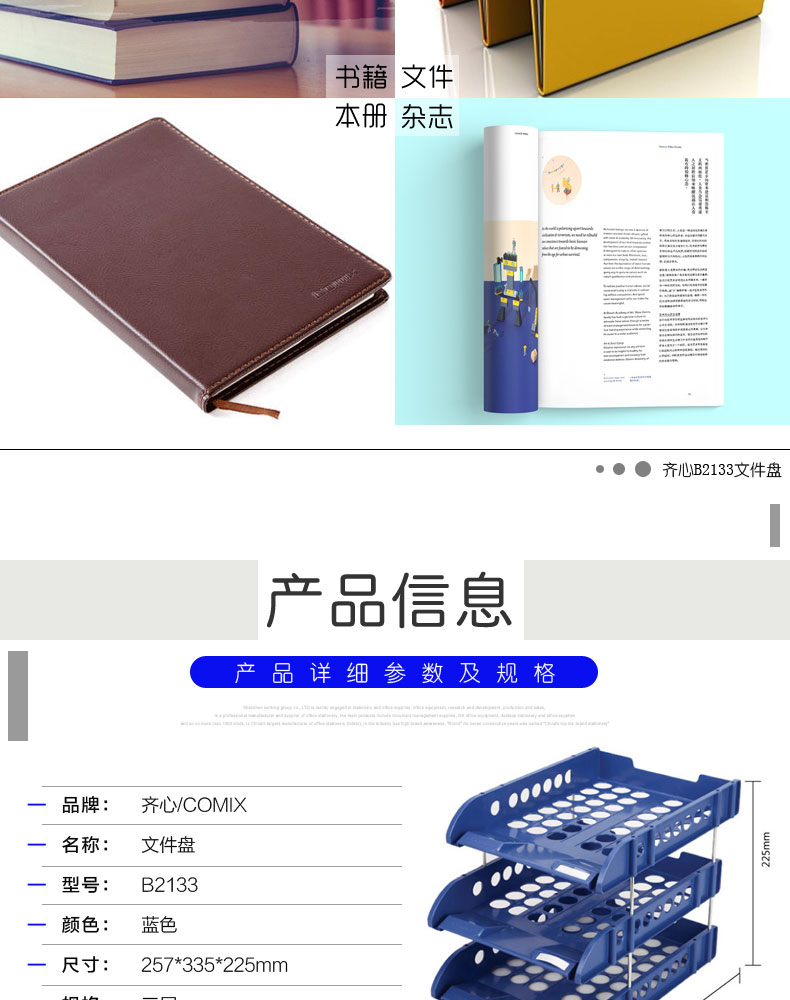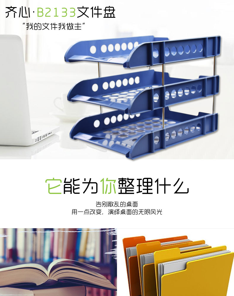 齐心(COMIX) B2133(蓝色)文件盘 三层