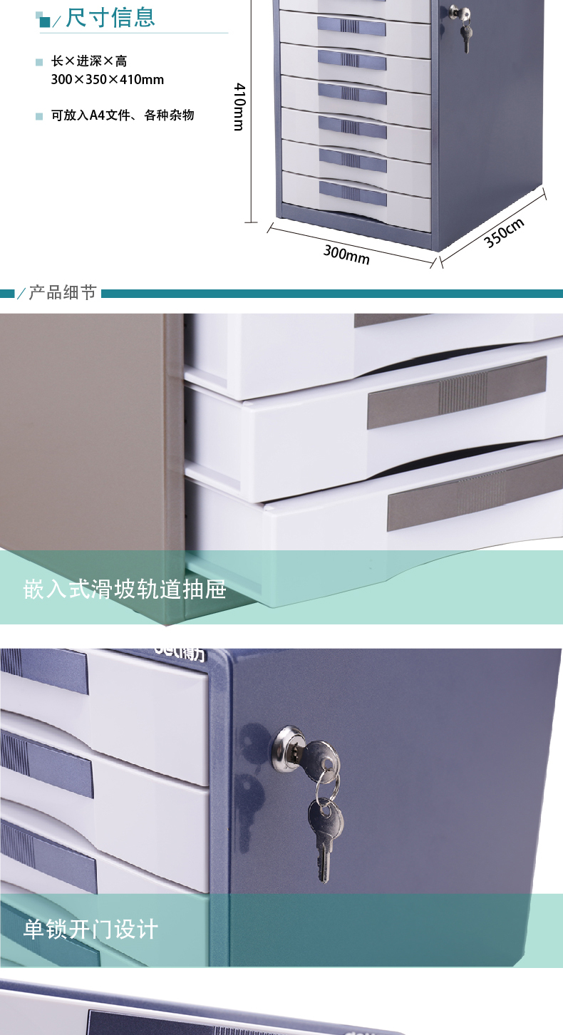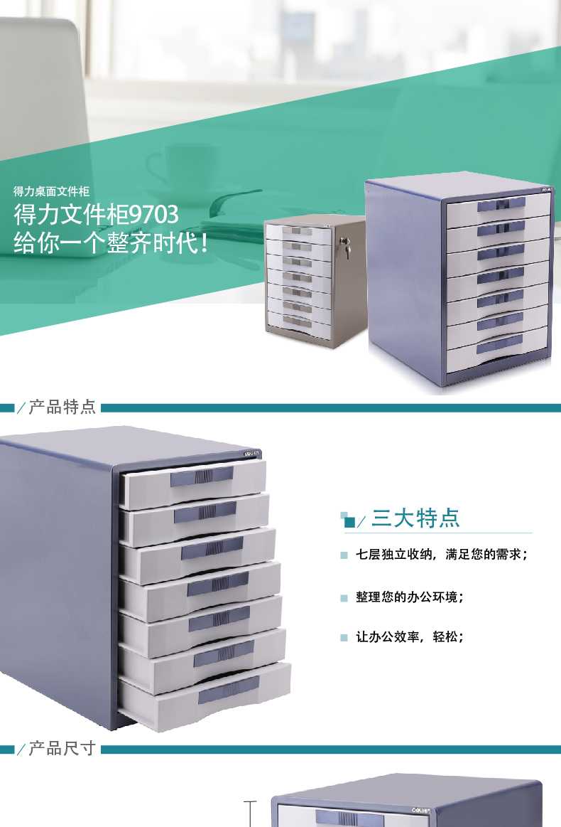 得力(deli) 9703(闪银蓝)七层金属外壳文件柜