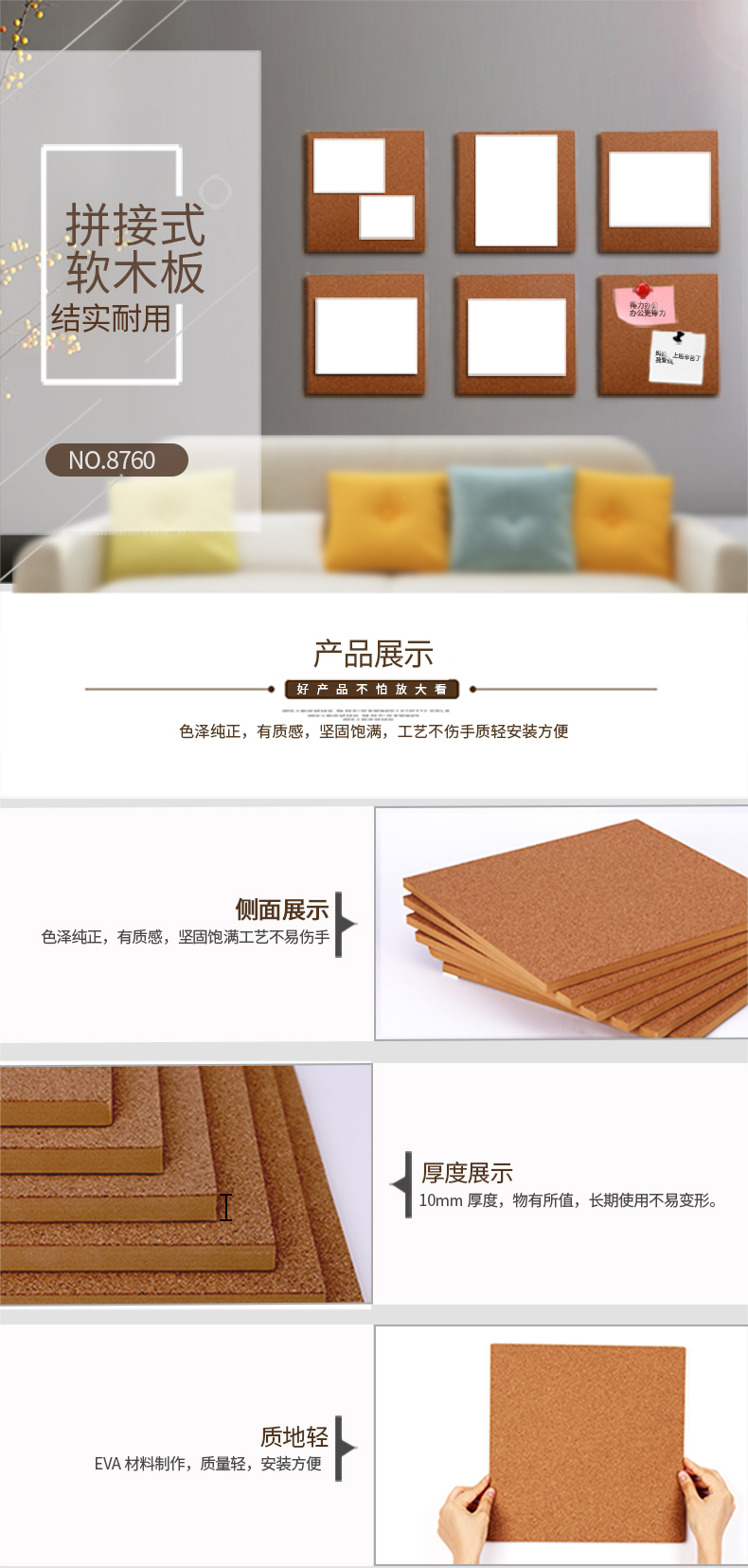 得力 8760(黄色)拼接式软木块29.5*29.5cm(6...