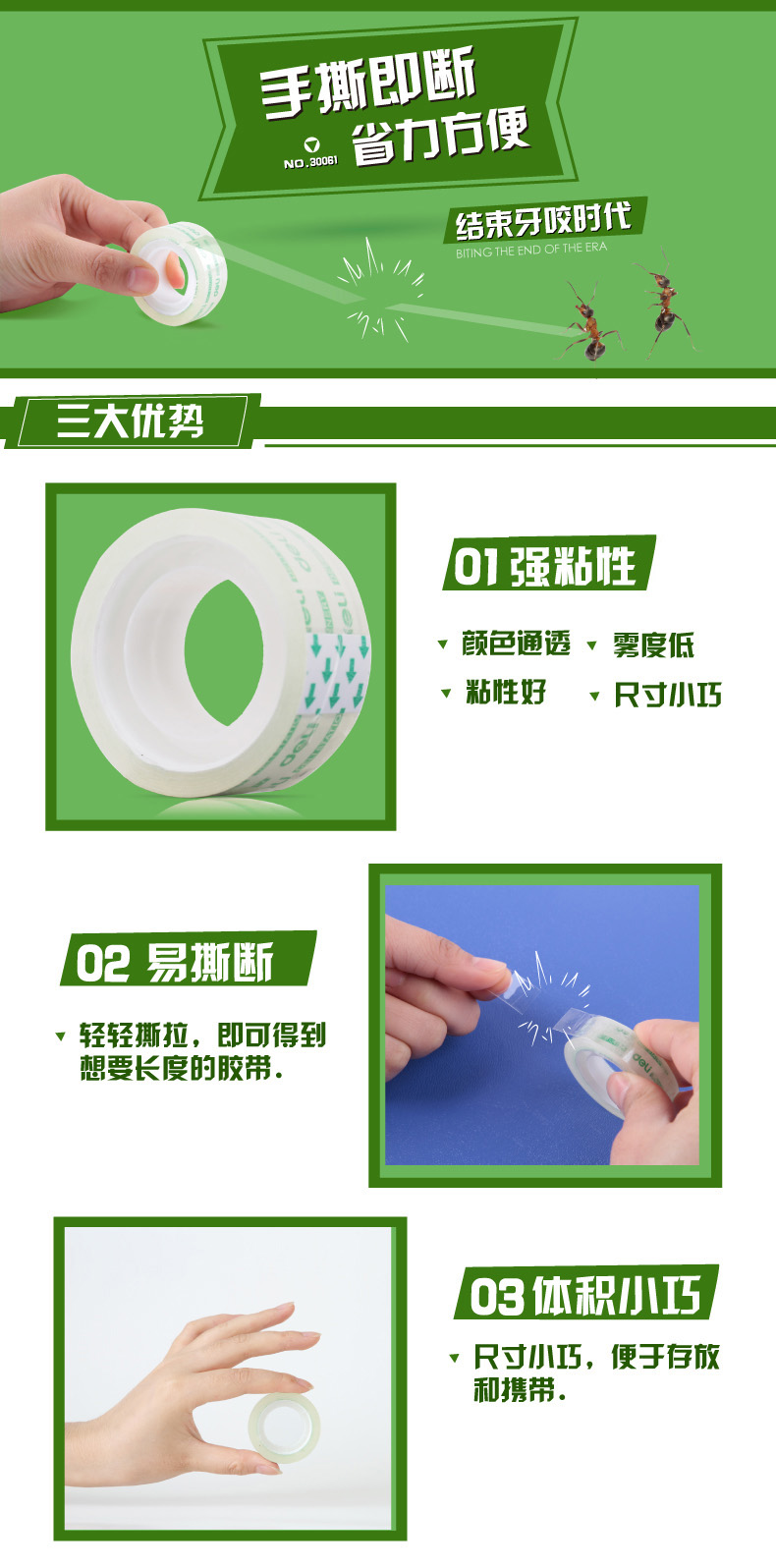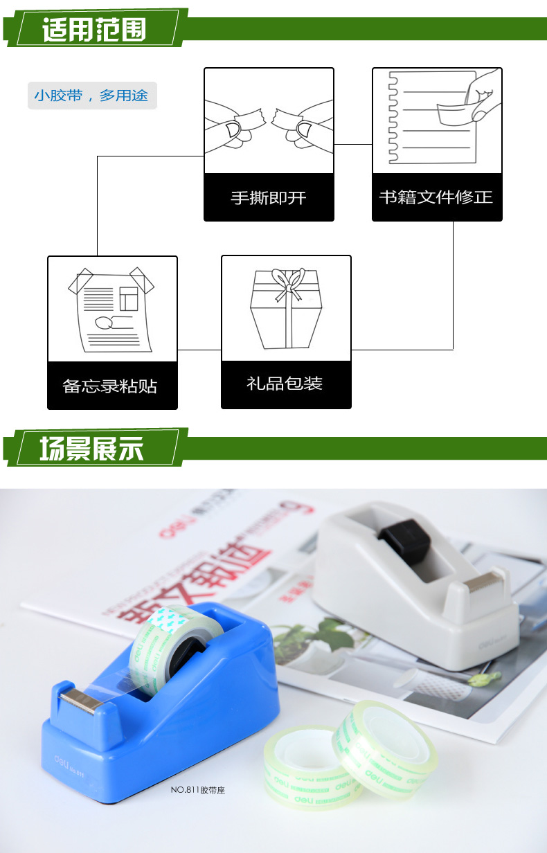得力 30011文具胶带12mm*14y(12卷/筒)