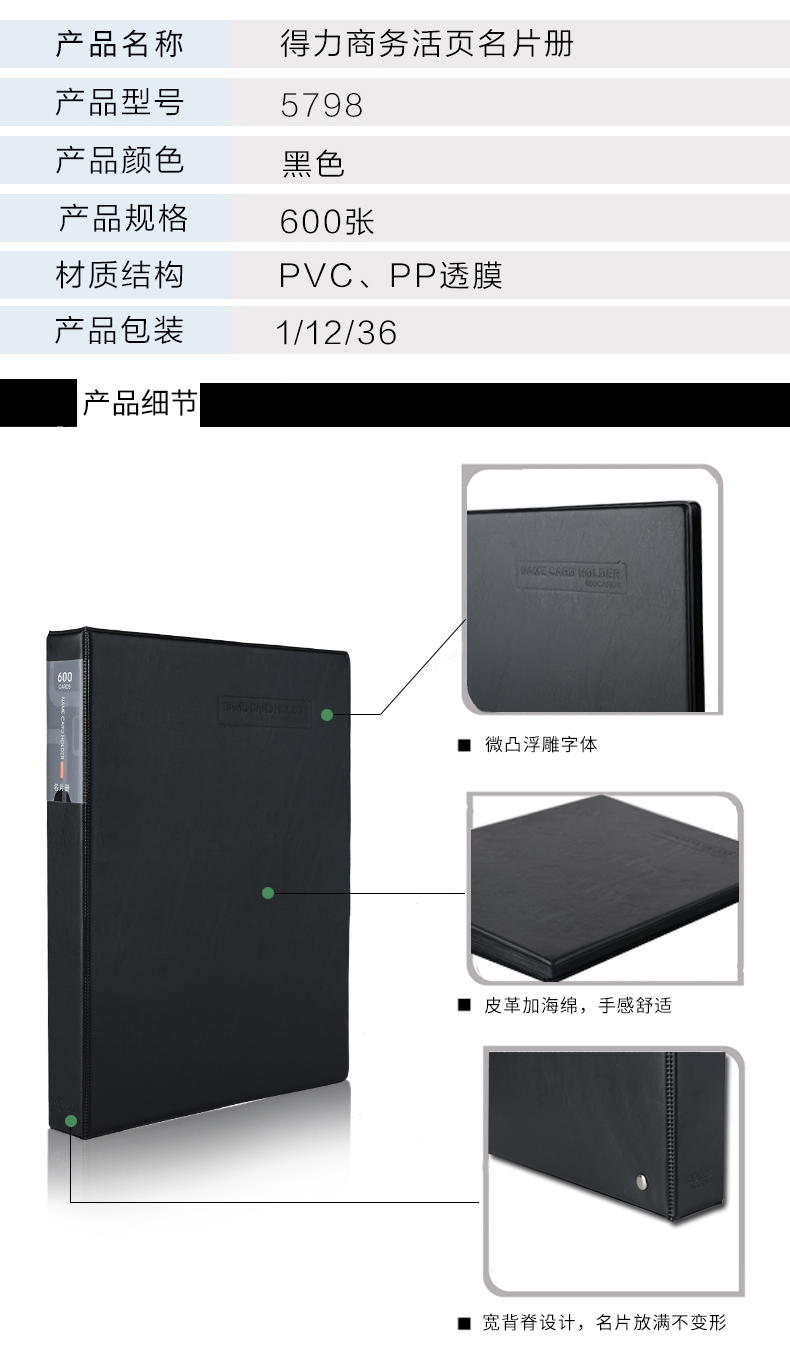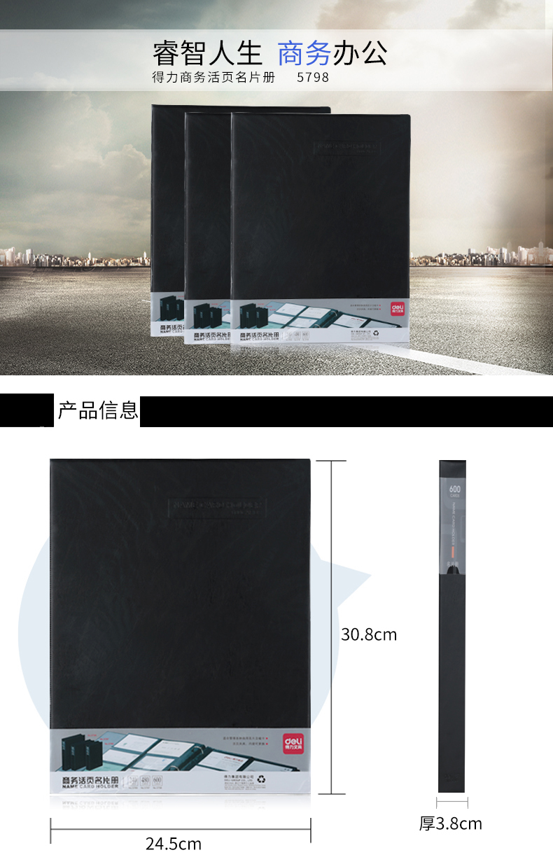 得力(deli) 5798(黑)活页名片册(600张)