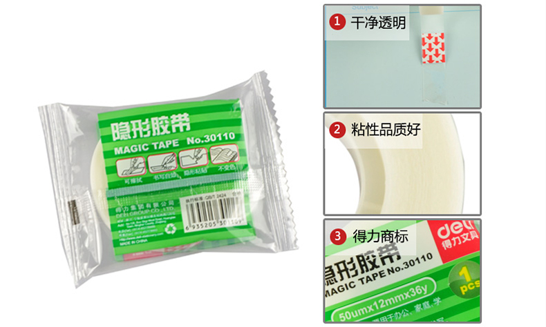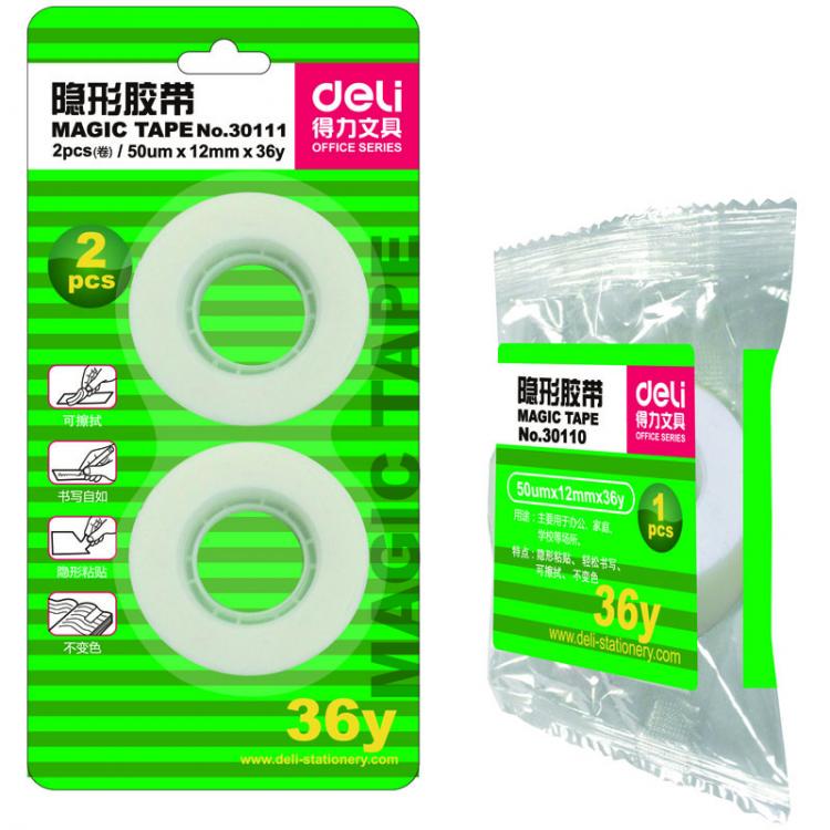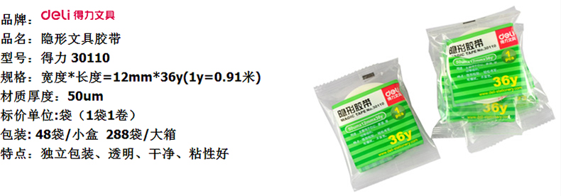 得力 30110文具胶带易撕型隐形12mm*36y(卷)