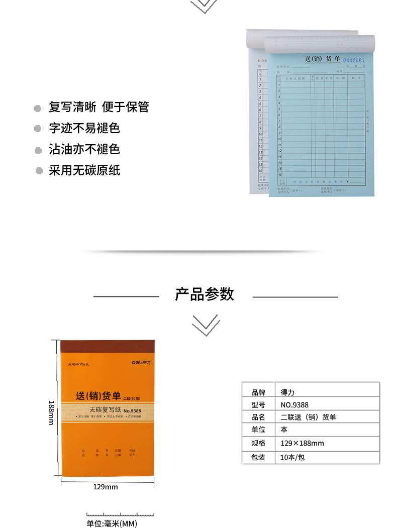 得力 9394(黄)三联领料单据87*175mm