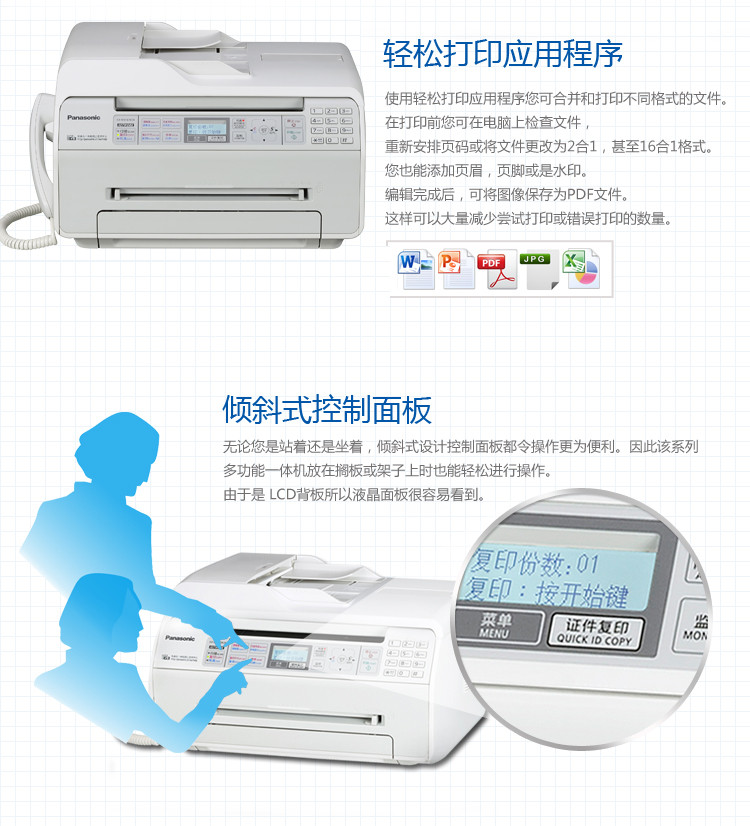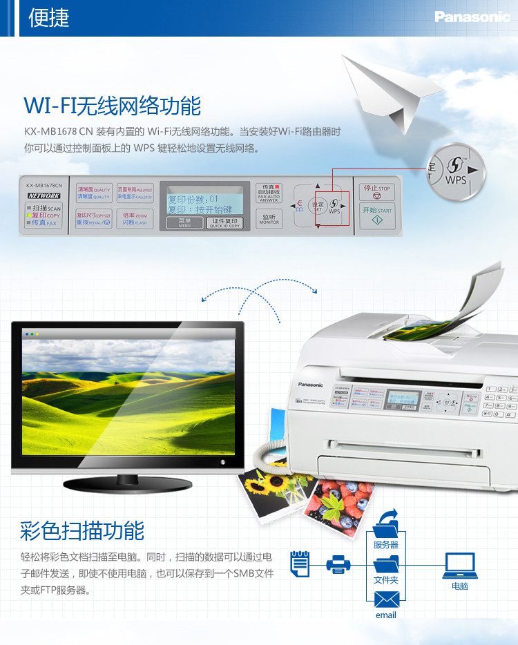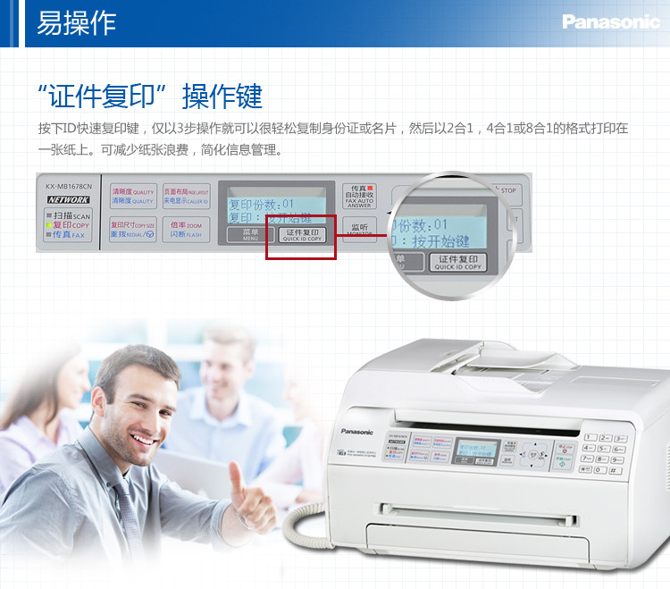 松下黑白激光多功能传真机 KX-MB1678CNW