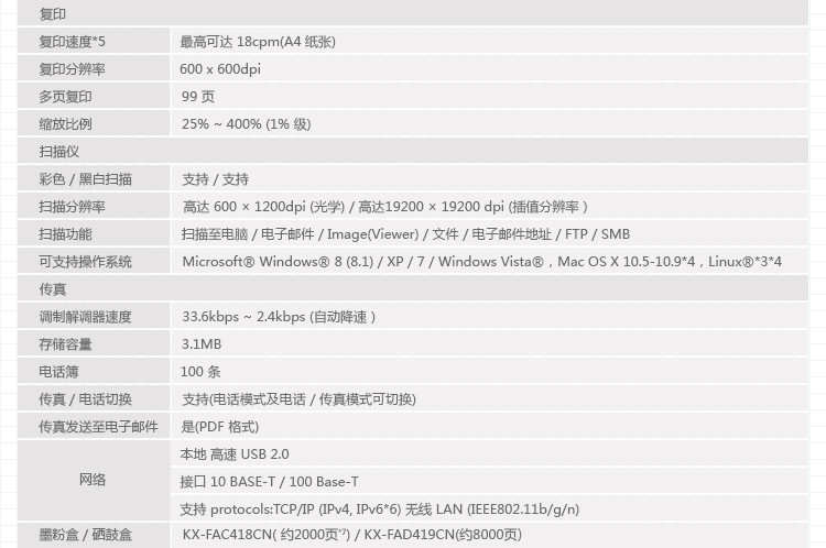 A4幅面 (打印/复印/扫描/传真) WIFI打印 支持无线/有线网络打印