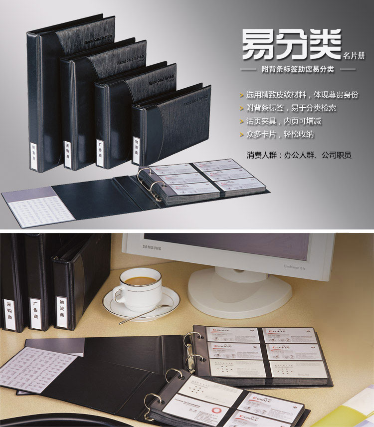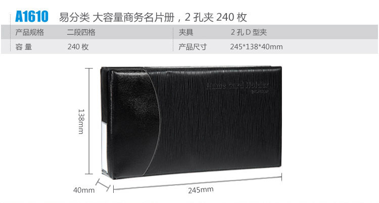 齐心(COMIX) A1610(黑)易分类大容量商务名片册2...