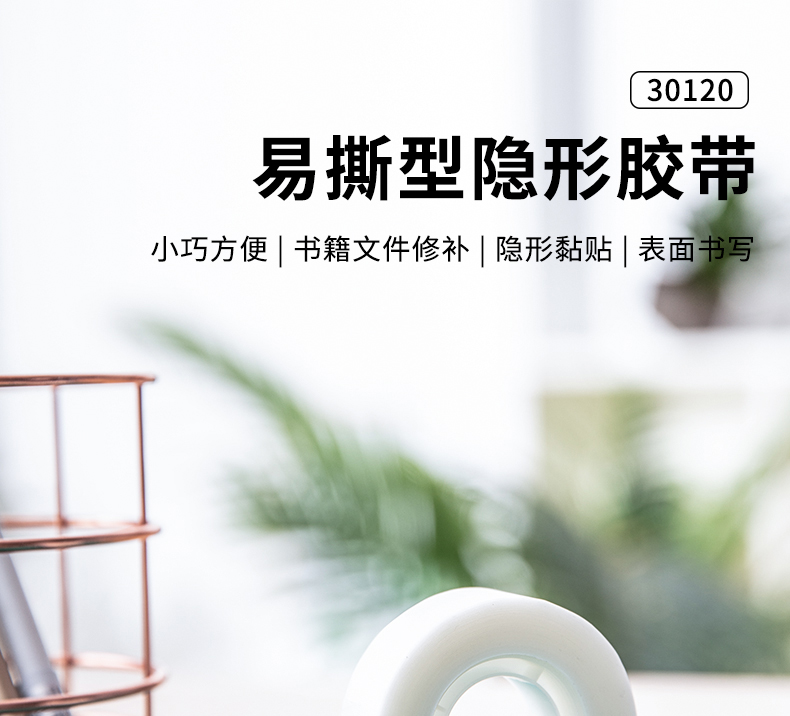 得力 30120(乳白)易撕隐形文具胶带18mm*36y*5...