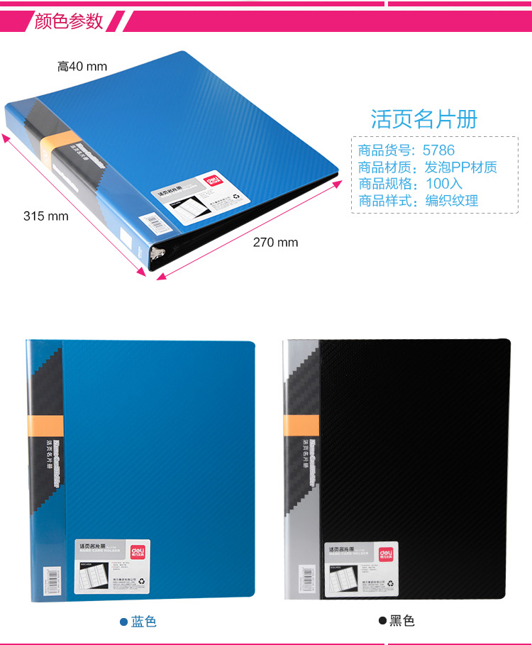 得力(deli) 5786(黑)发泡PP500入名片册(本)