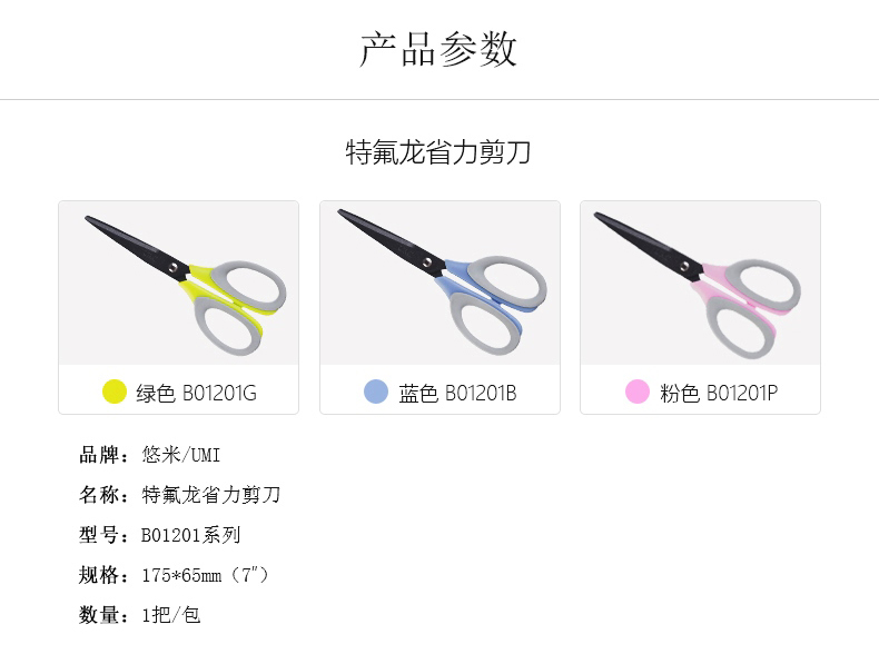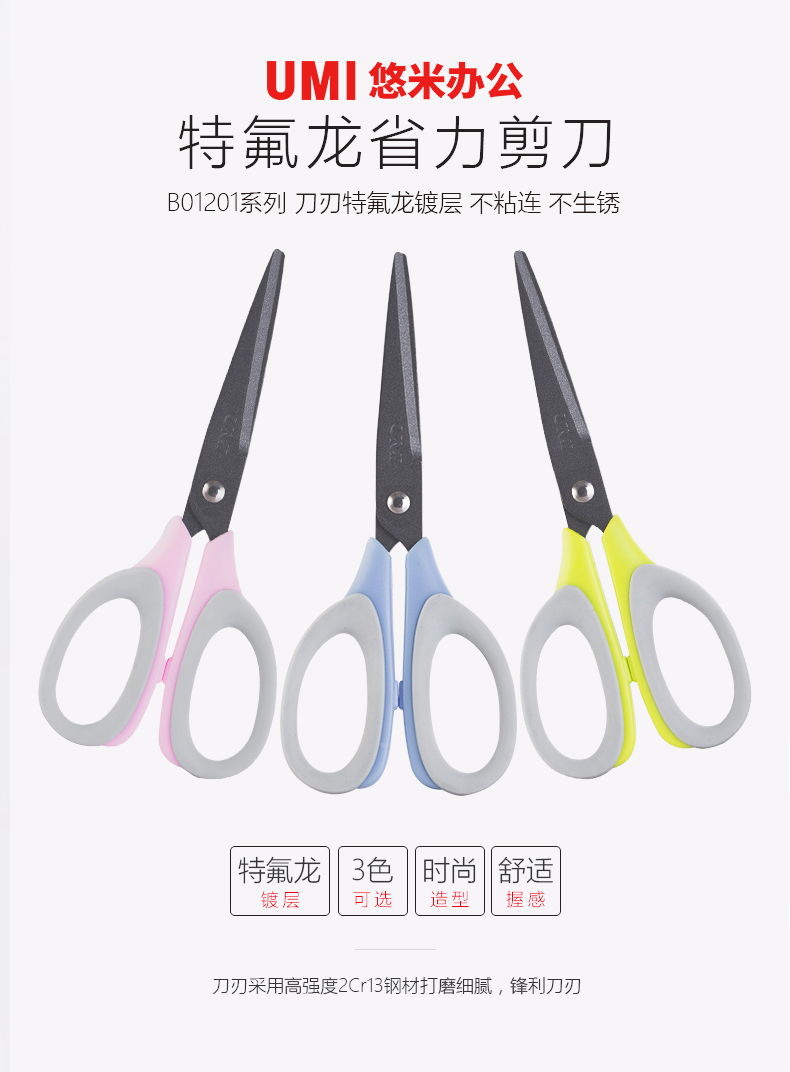 悠米 特氟龙省力剪刀 B01201B 蓝
