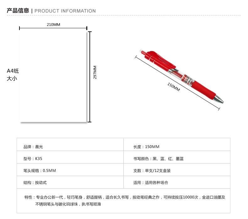 晨光 K35A-02(黑)中性笔办公 0.5