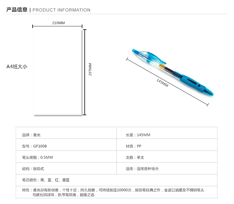晨光(M&G) GP1008A(黑)中性笔创意者 0.5