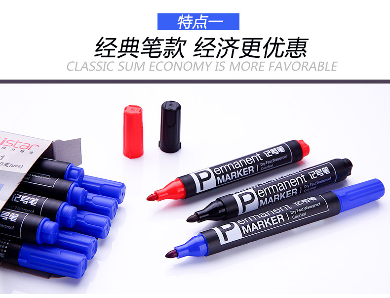 悠米 经典小双头记号笔 S03102D黑色 10支/盒