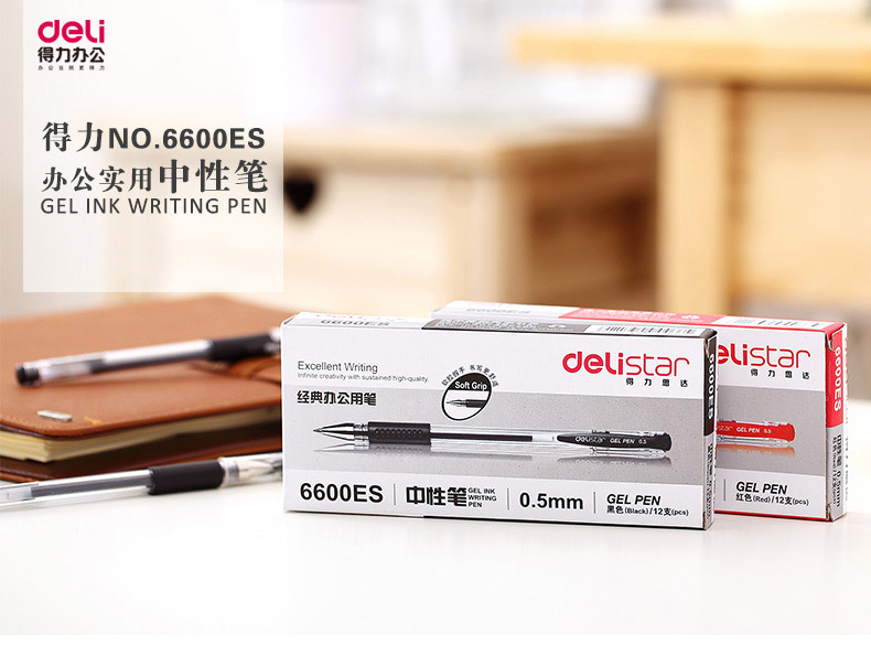 得力(deli) 6600ES(黑)思达0.5拔帽式中性笔