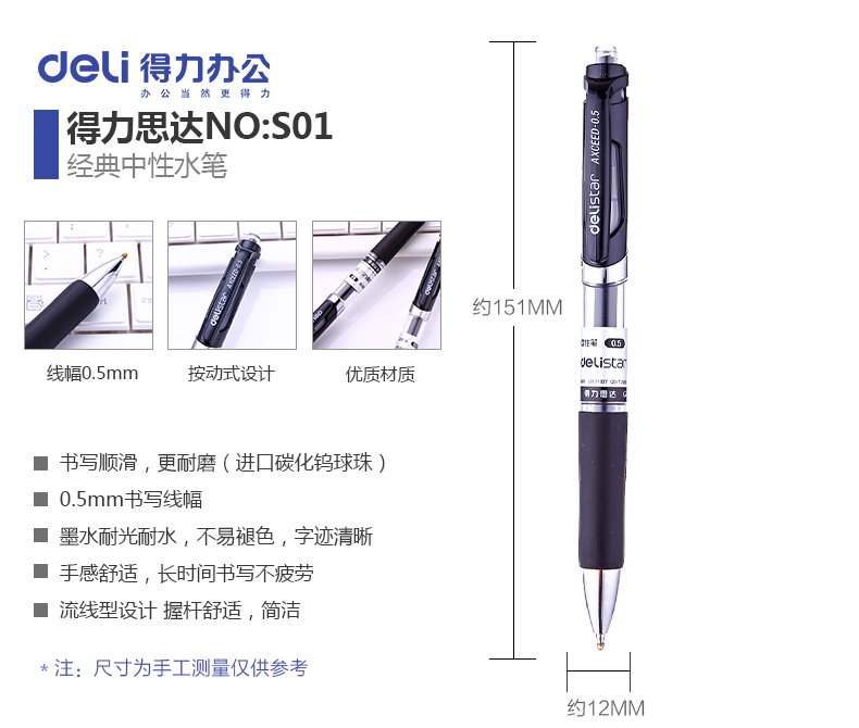 得力(deli) S01(黑)0.5按动式中性笔