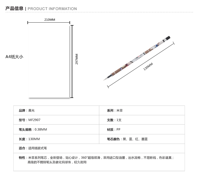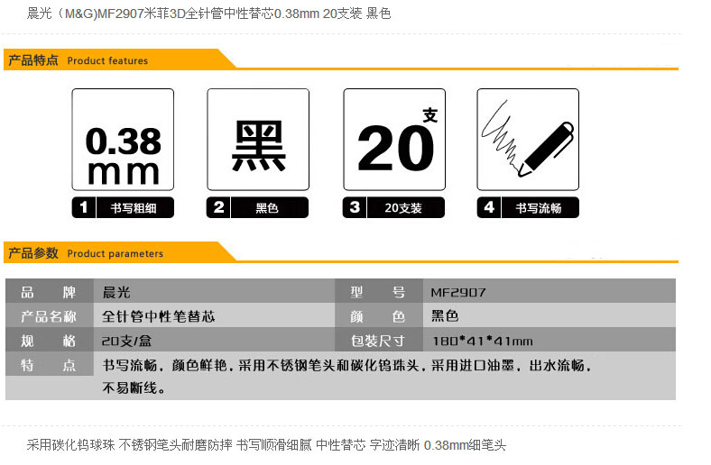 晨光(M&G) MF2907A(黑)中性替芯米菲3D全针管 ...
