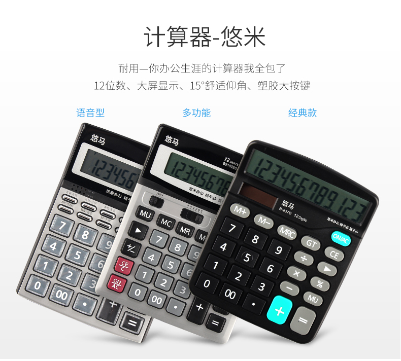 悠米(UMI)B21003S经典语音型计算器12位(银)