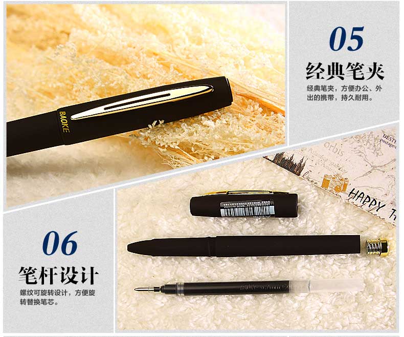 宝克(BAOKE) PC1848(黑)中性笔/水笔金属笔夹大...