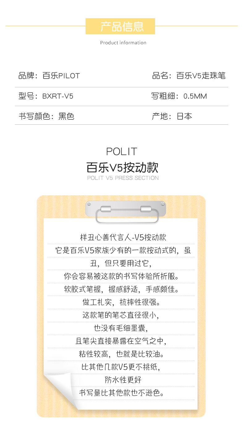 百乐(PILOT) BXRT-V5(黑)开拓王走珠笔 0.5