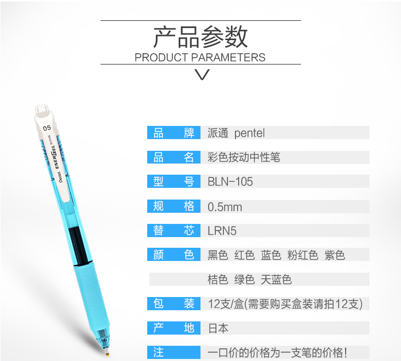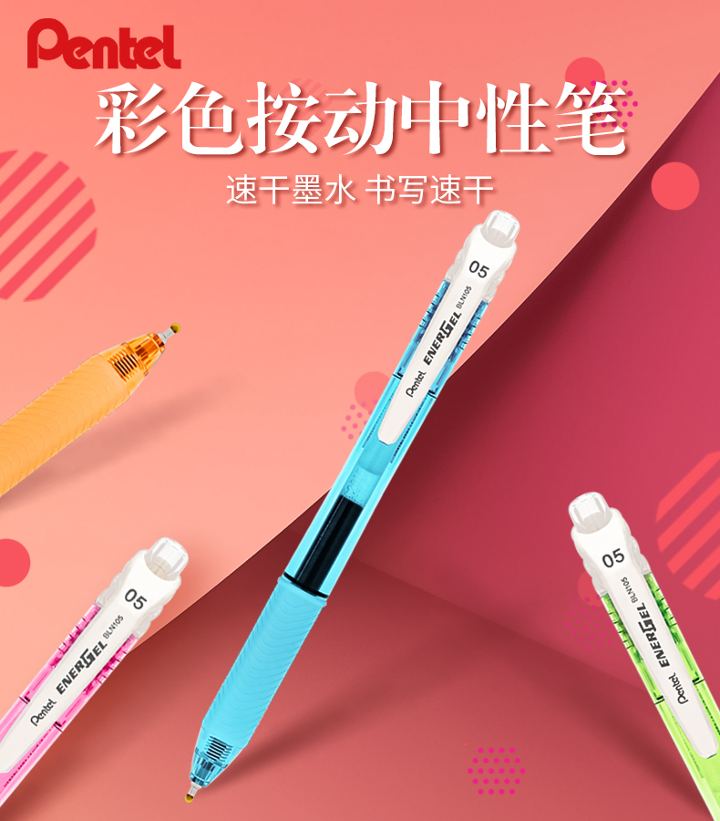 派通(Pentel) BLN105(蓝)按动中性笔顺滑考试水...