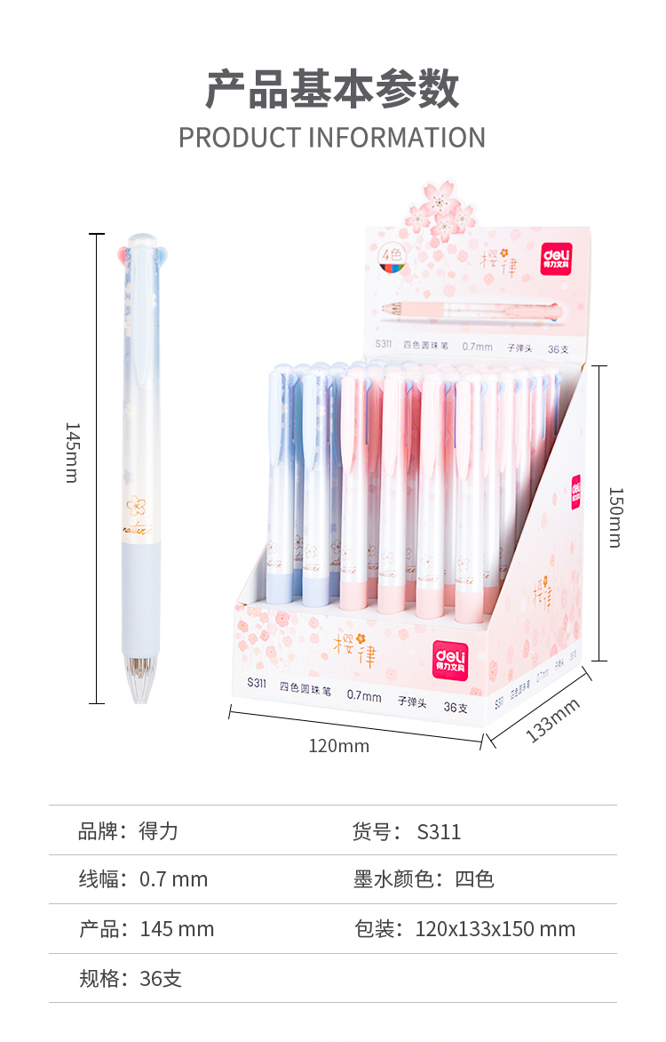 得力(deli) S311(混色)四色圆珠笔0.7mm子弹头