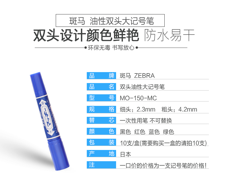斑马(ZEBRA) 大麦奇MO-150-MC(黑)双头(粗+...