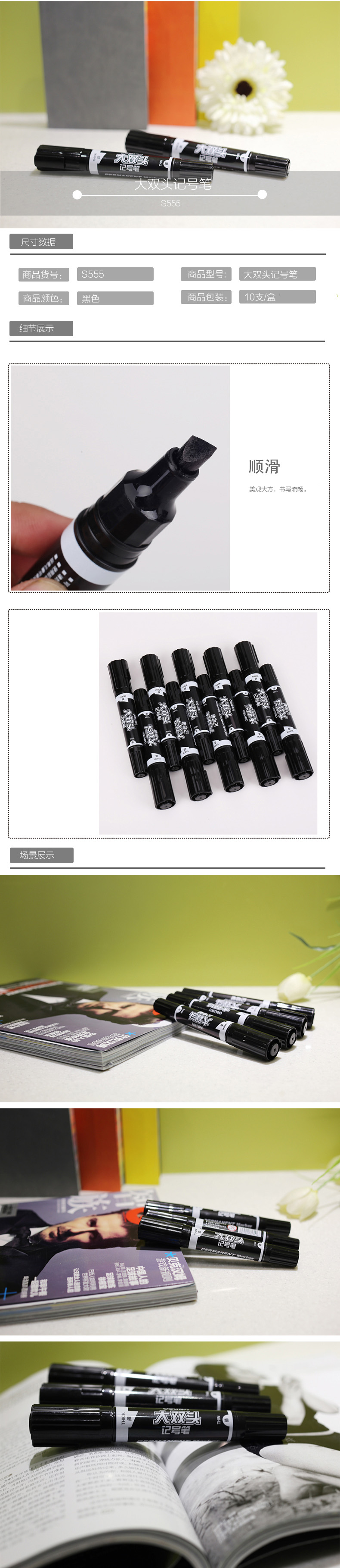 悠米 经典小双头记号笔 S03102D黑色 10支/盒