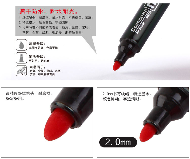 悠米 经典小双头记号笔 S03102D黑色 10支/盒