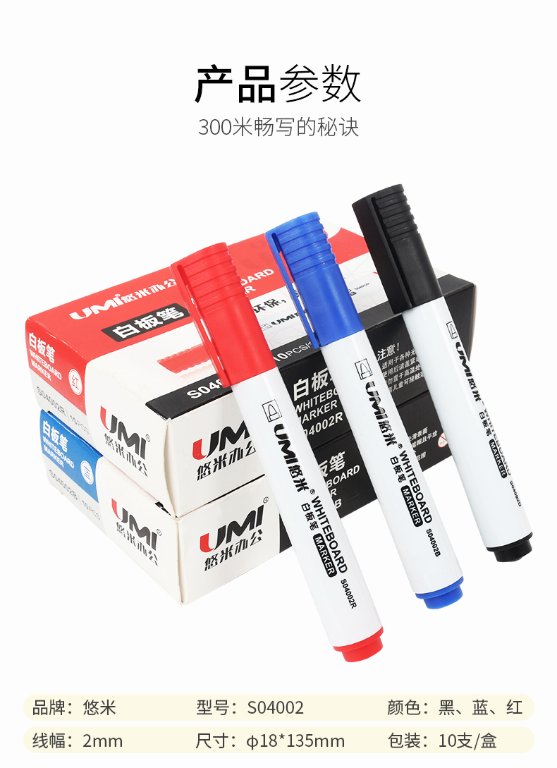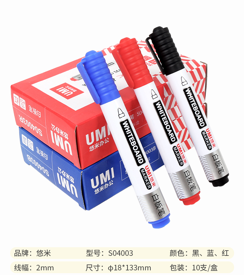 悠米 经典小双头记号笔 S03102D黑色 10支/盒