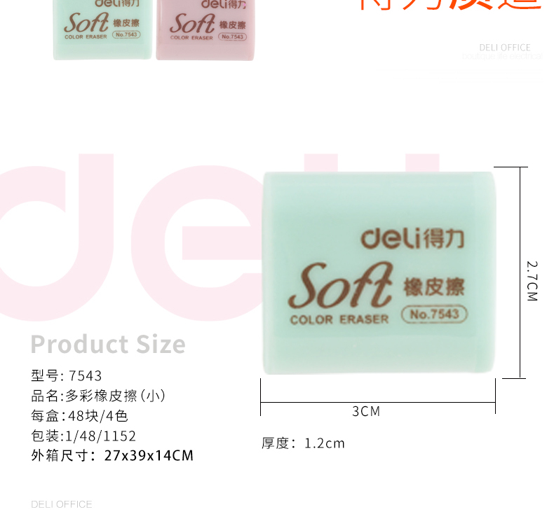 得力(deli) 7543多彩橡皮(混)