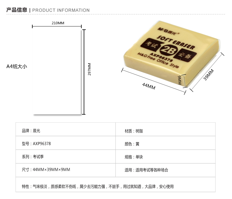晨光(M&G) AXP96378(黄)橡皮2B