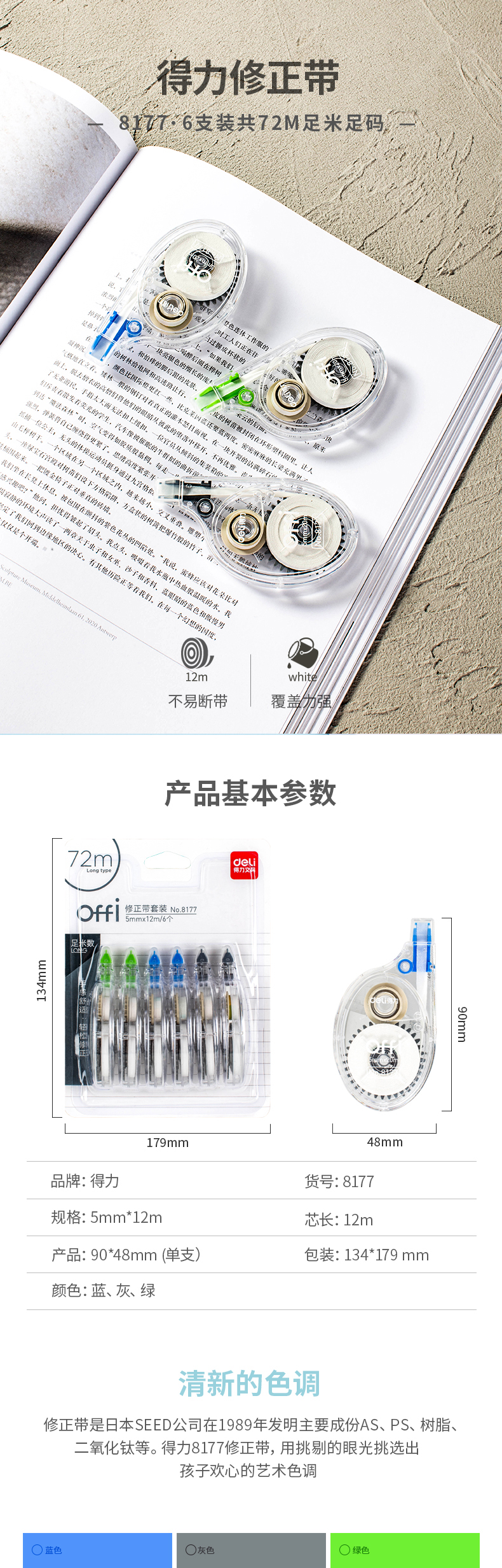 得力(deli) 8177修正带(混)(6只/卡)