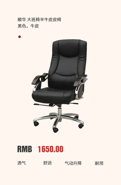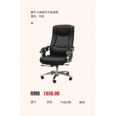 顺华大班椅半牛皮皮椅黑色,牛皮