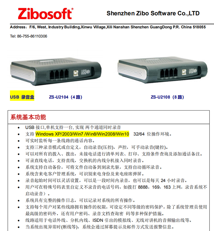 梓博 ZS-U2108 录音盒 8路 USB 接口
