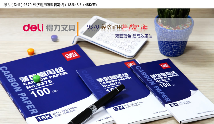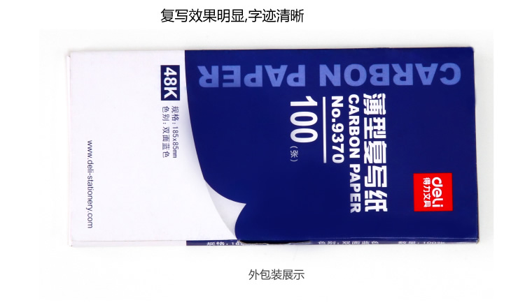 得力9370蓝色双面薄型48k复写纸