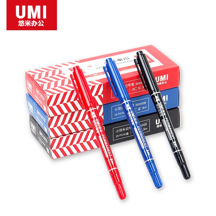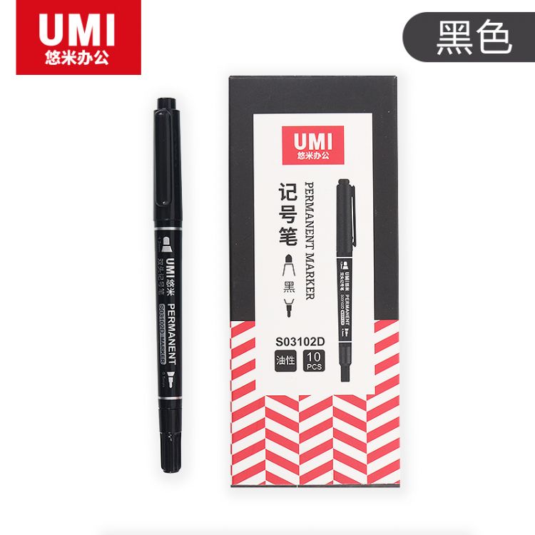 悠米 经典小双头记号笔 S03102D黑色 10支/盒