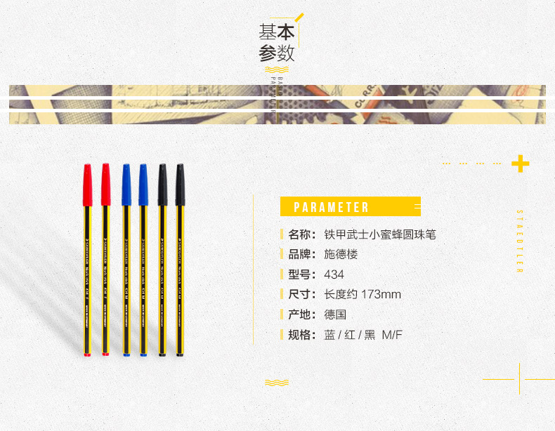 施德楼0.7mm 圆珠笔 434 F 超长书写距离;一次性油笔,不可换笔芯20支/盒