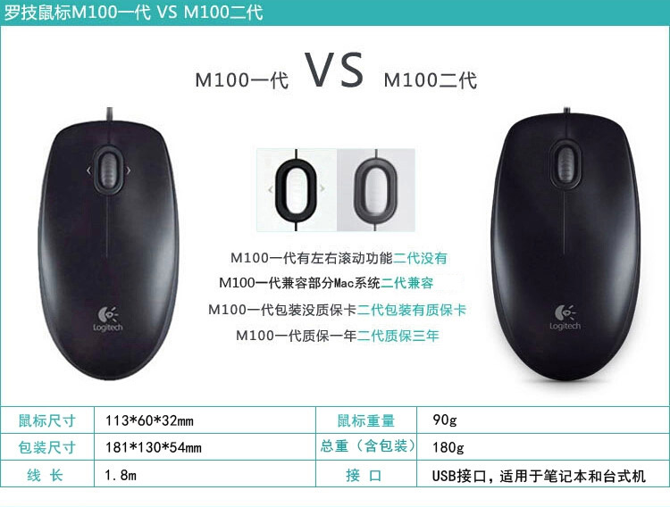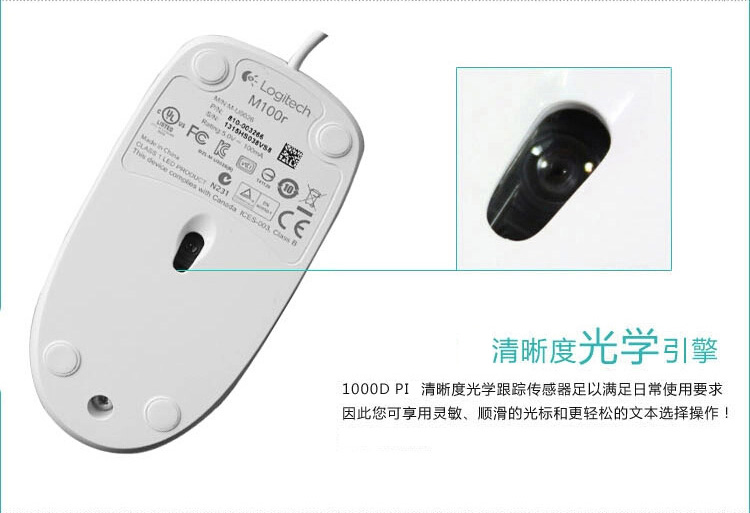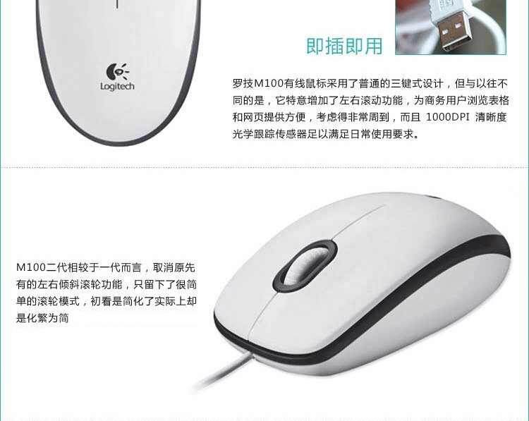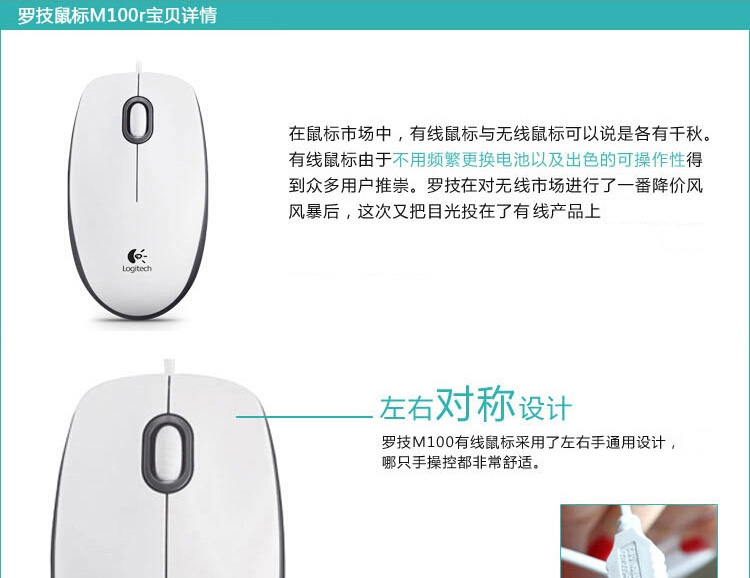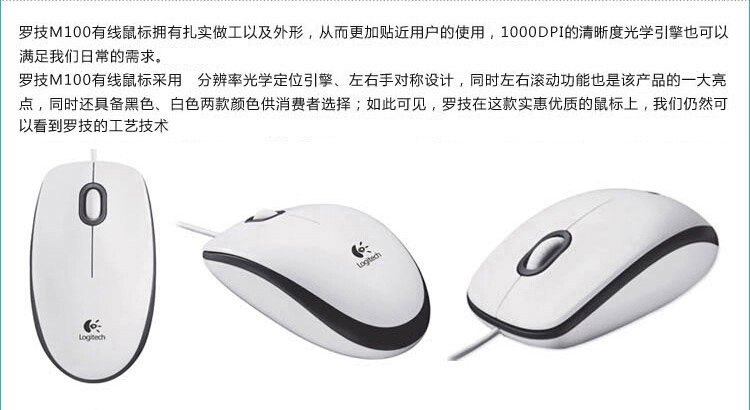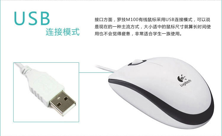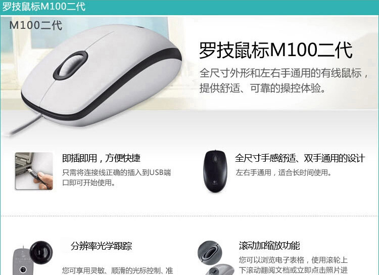 罗技M100r二代有线鼠标 光电USB有线鼠标