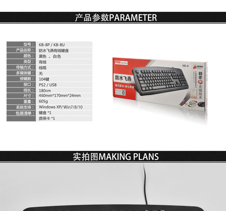 双飞燕USB有线键盘 防水键盘KB-8