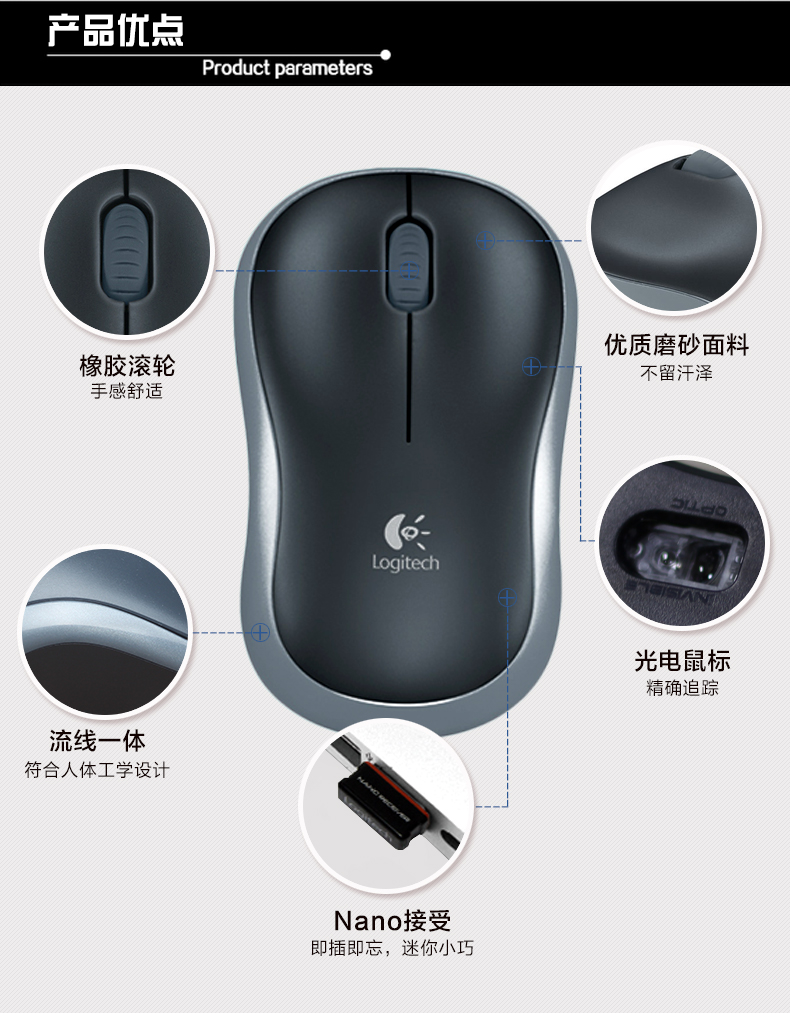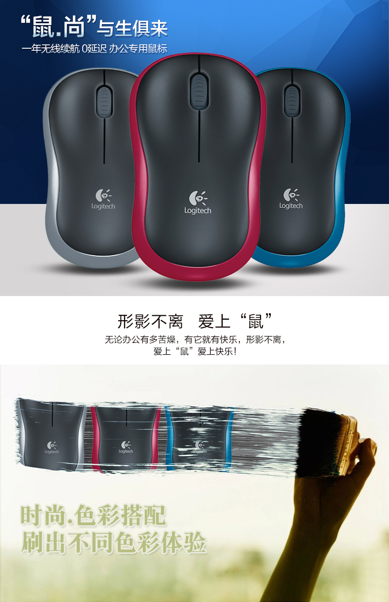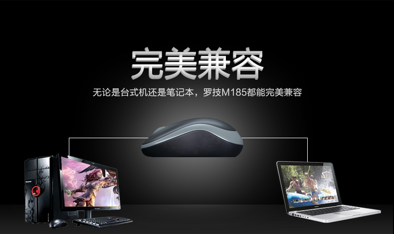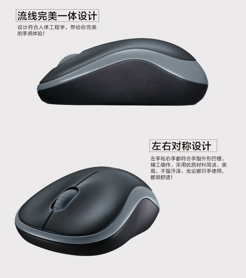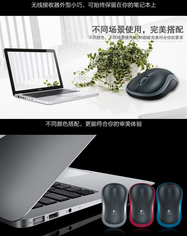 罗技M185办公鼠标 笔记本台式机电脑无线鼠标 黑色蓝边
