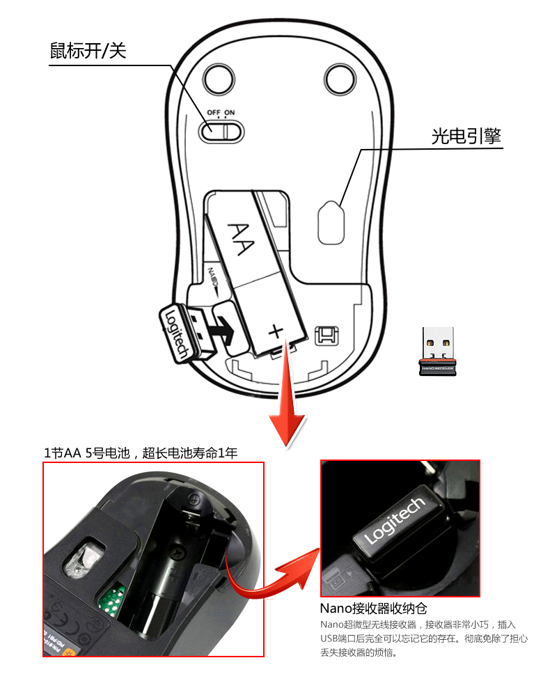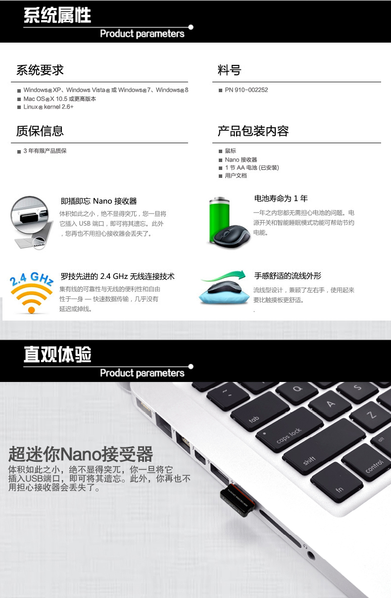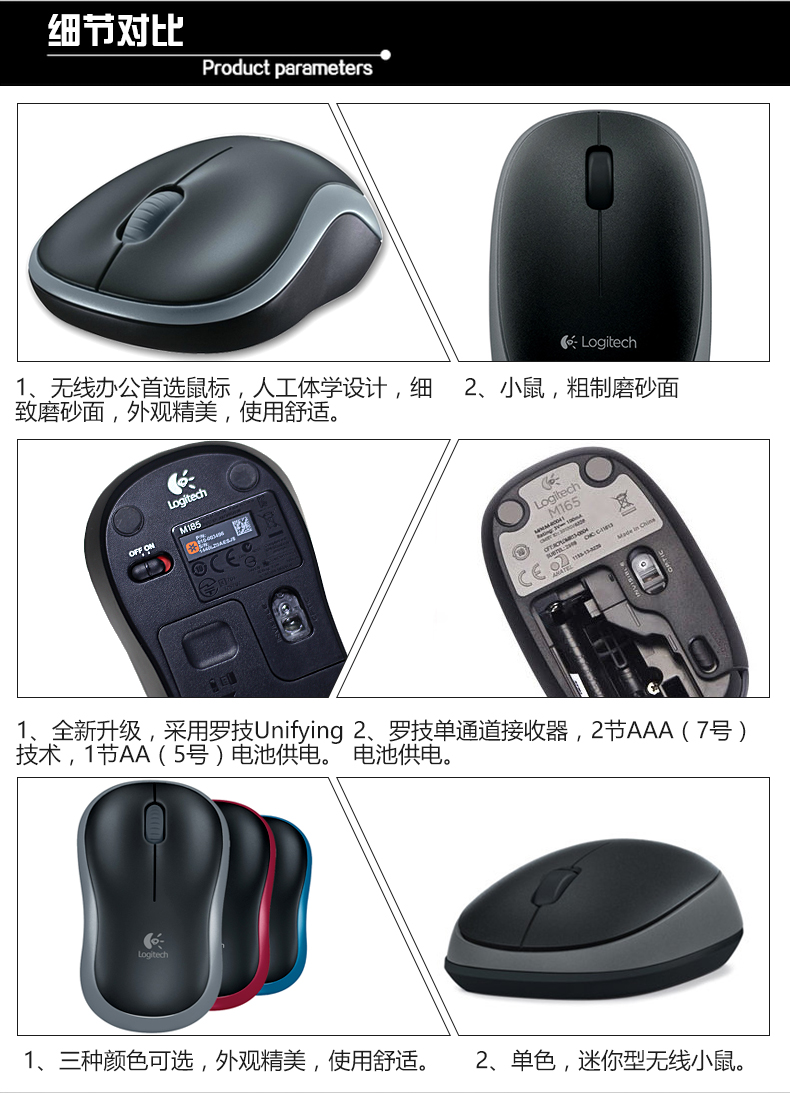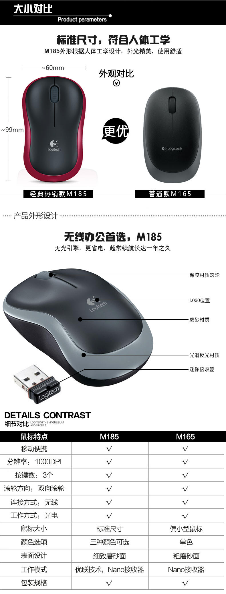 罗技M185办公鼠标 笔记本台式机电脑无线鼠标 黑色蓝边
