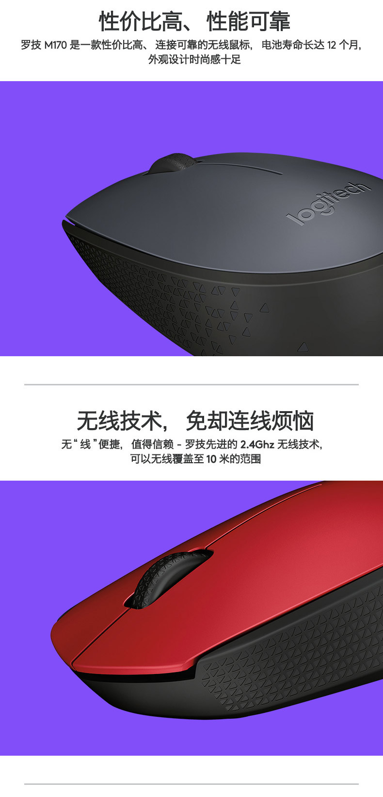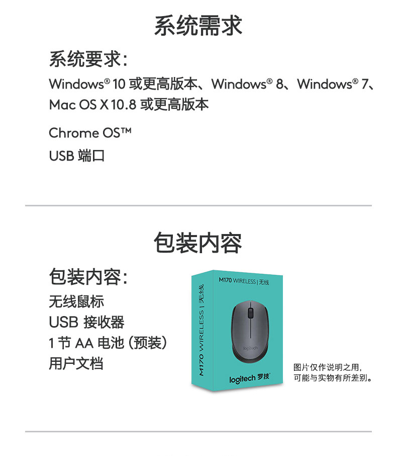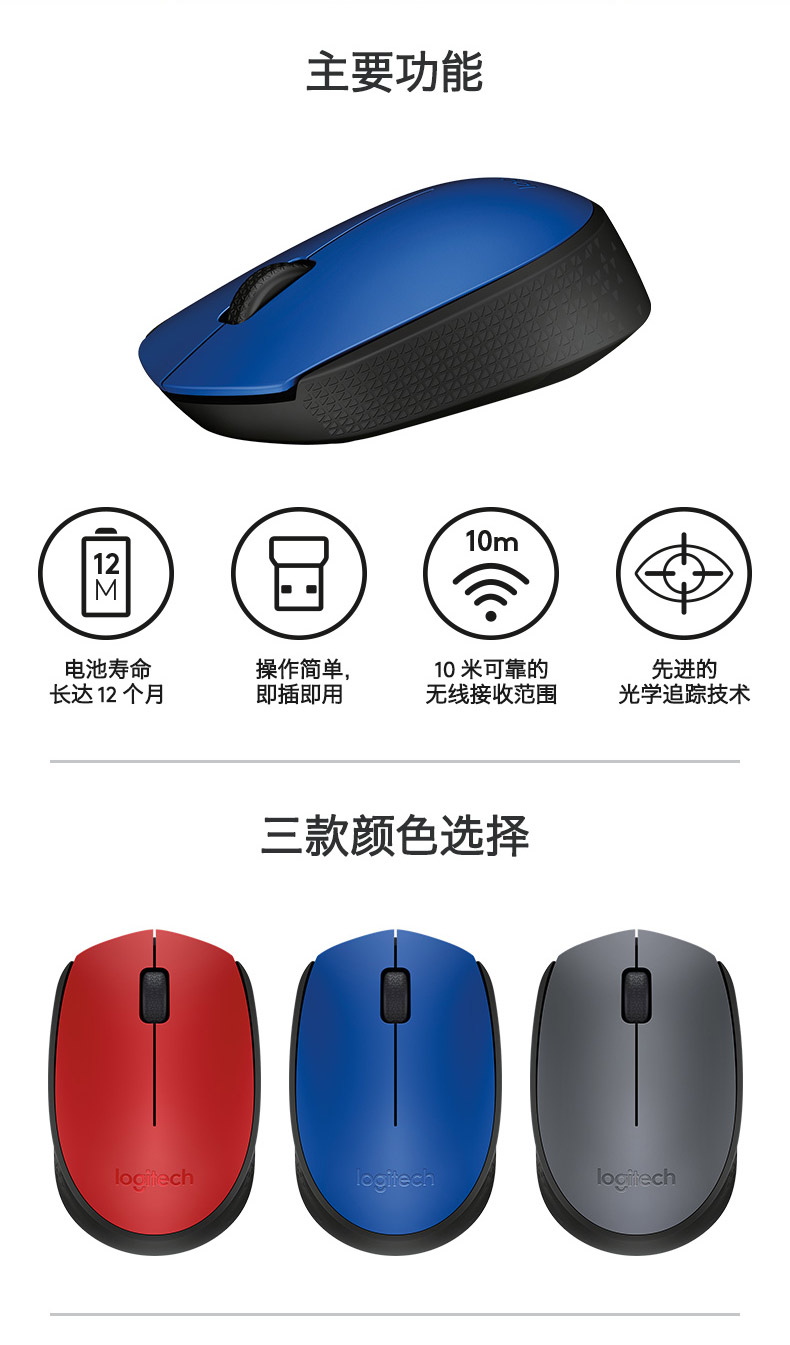 罗技M170无线鼠标 笔记本台式电脑光电鼠标 黑灰色