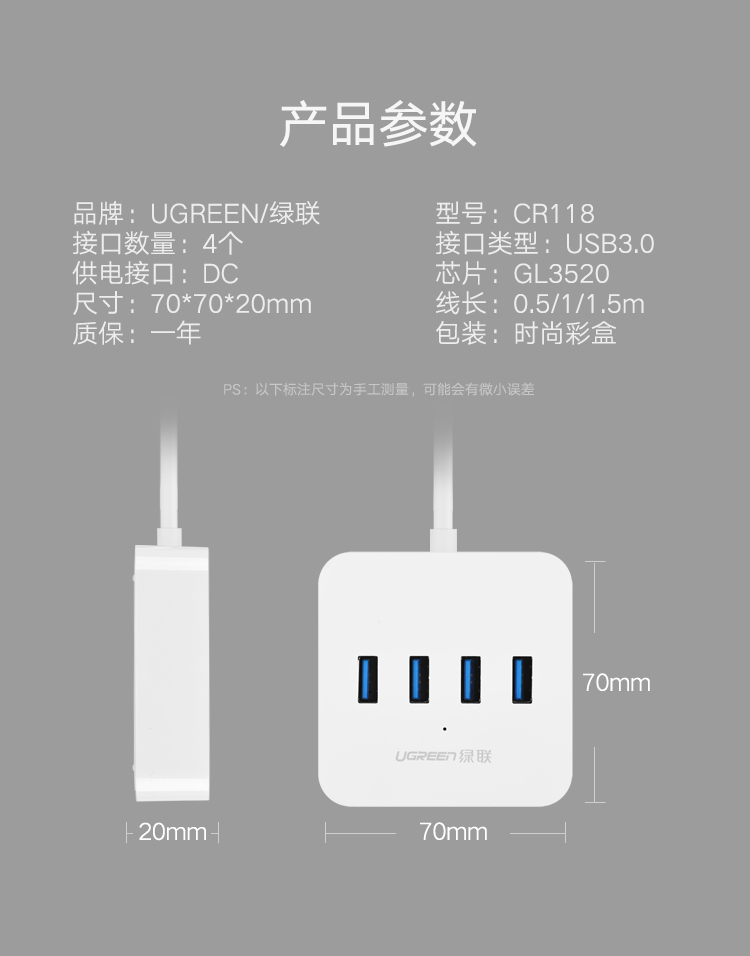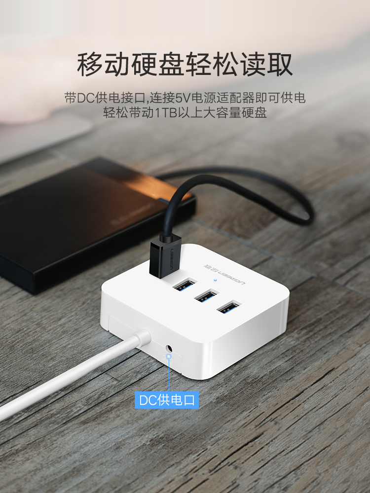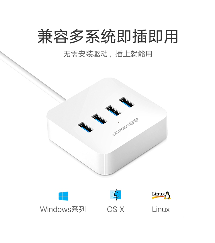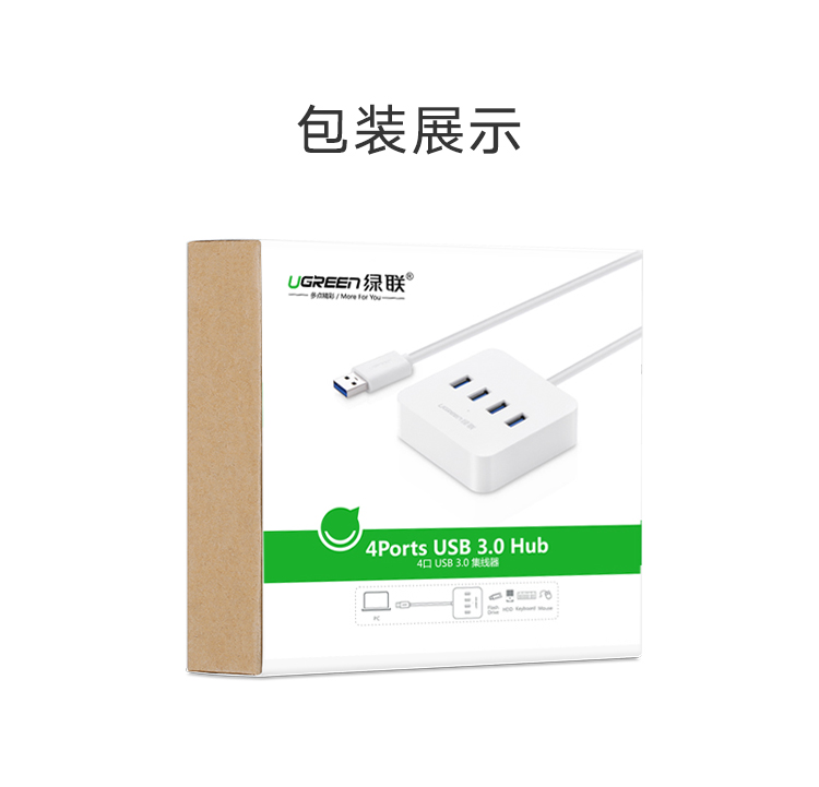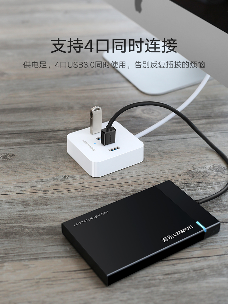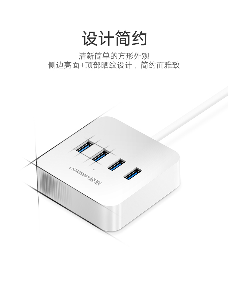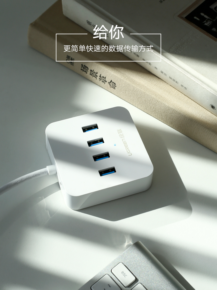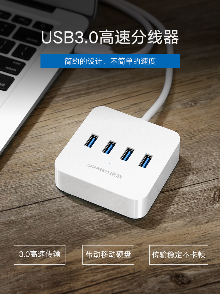 绿联USB3.0分线器一拖四笔记本电脑高速多接口hub扩展转...