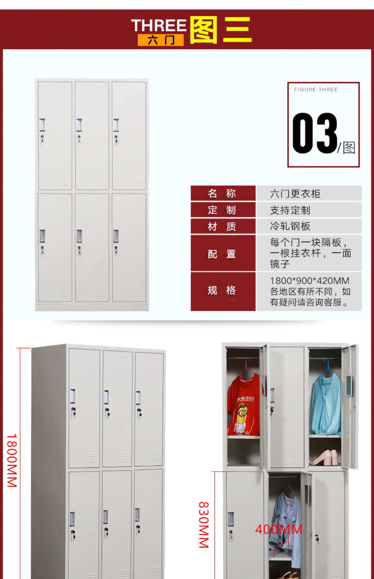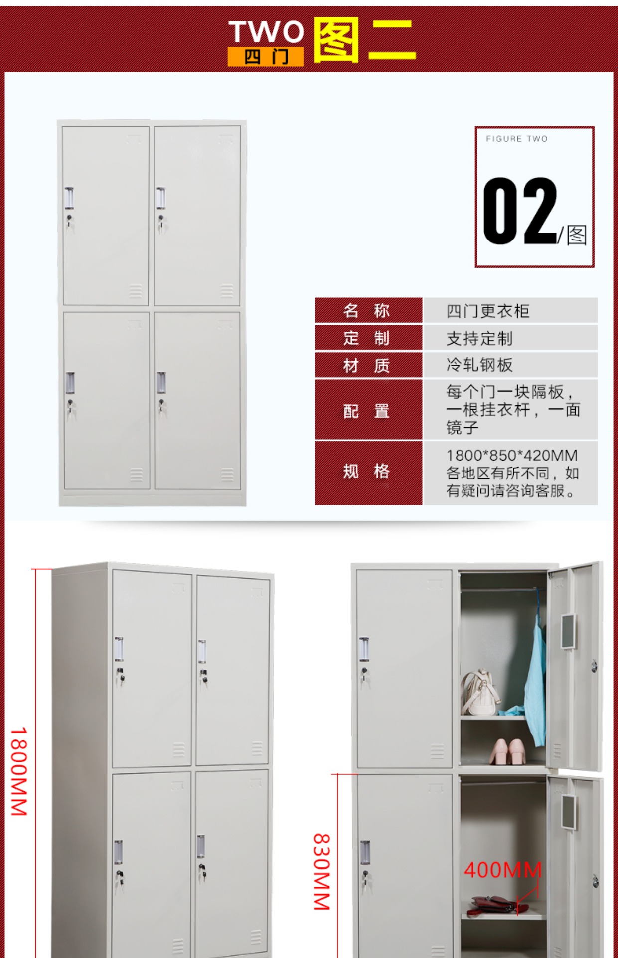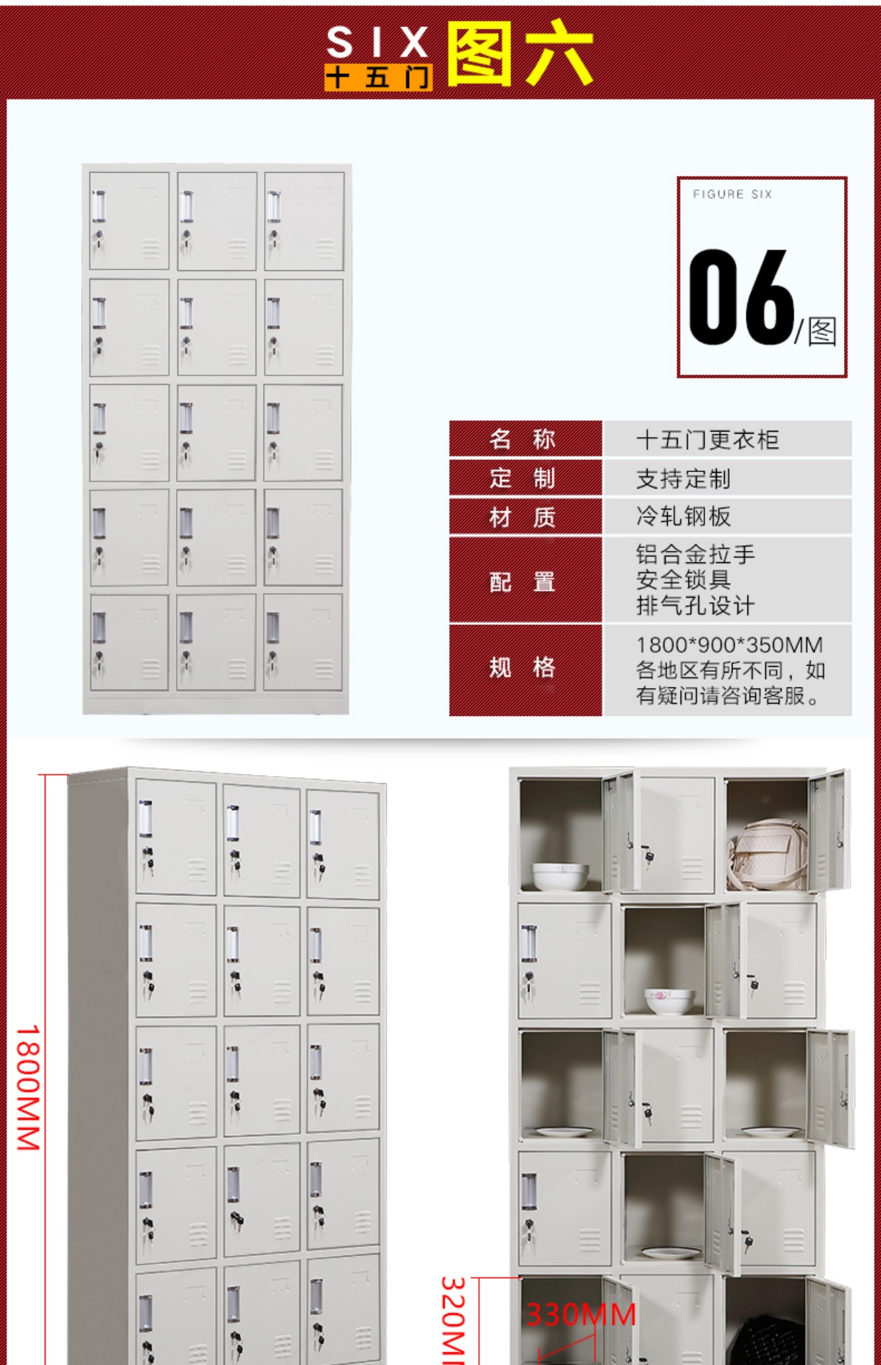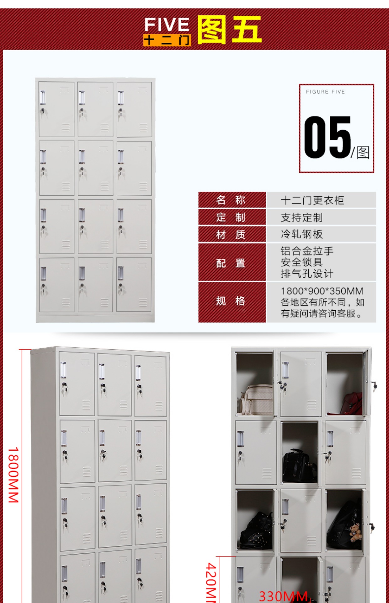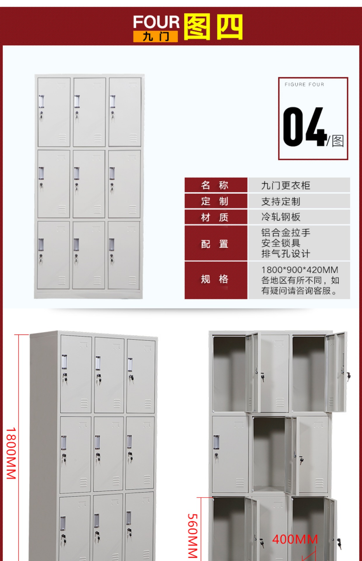 储物柜 多门更衣柜 带锁浴室员工宿舍鞋柜