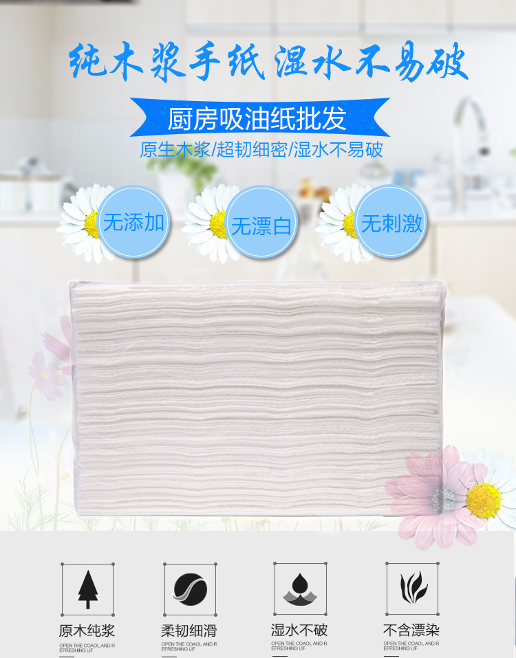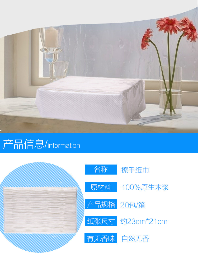 高级商务纯木浆擦手纸 厨房吸油纸20包