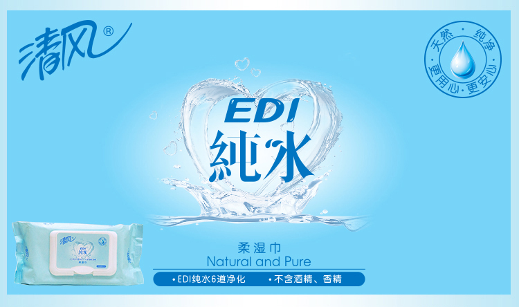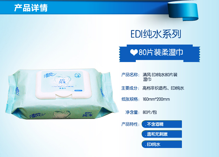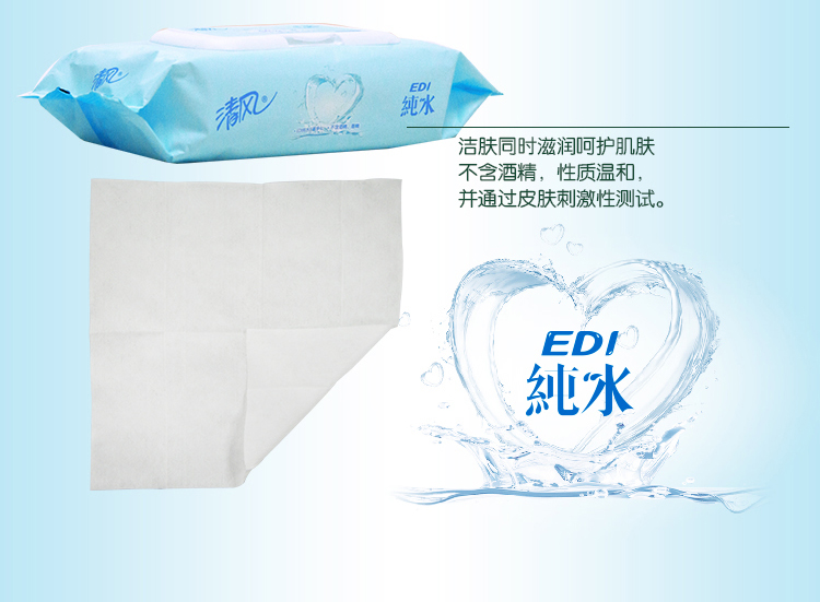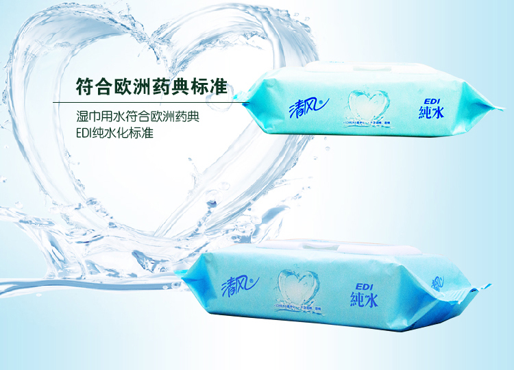 清风 纯水系列 80片装便携抽取式湿巾 12包/箱