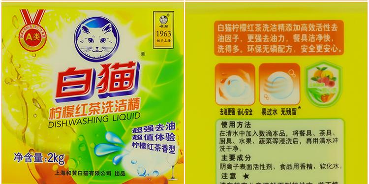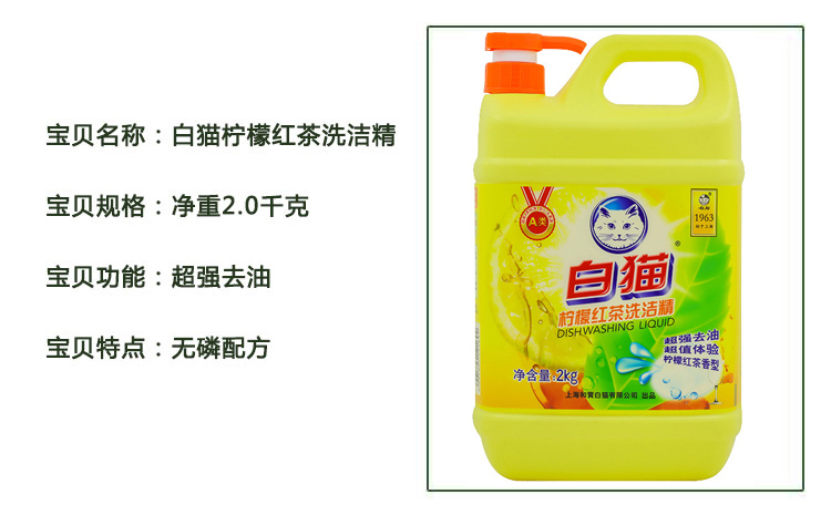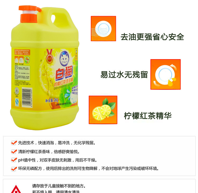 白猫 柠檬红茶洗洁精2000g 8桶/箱