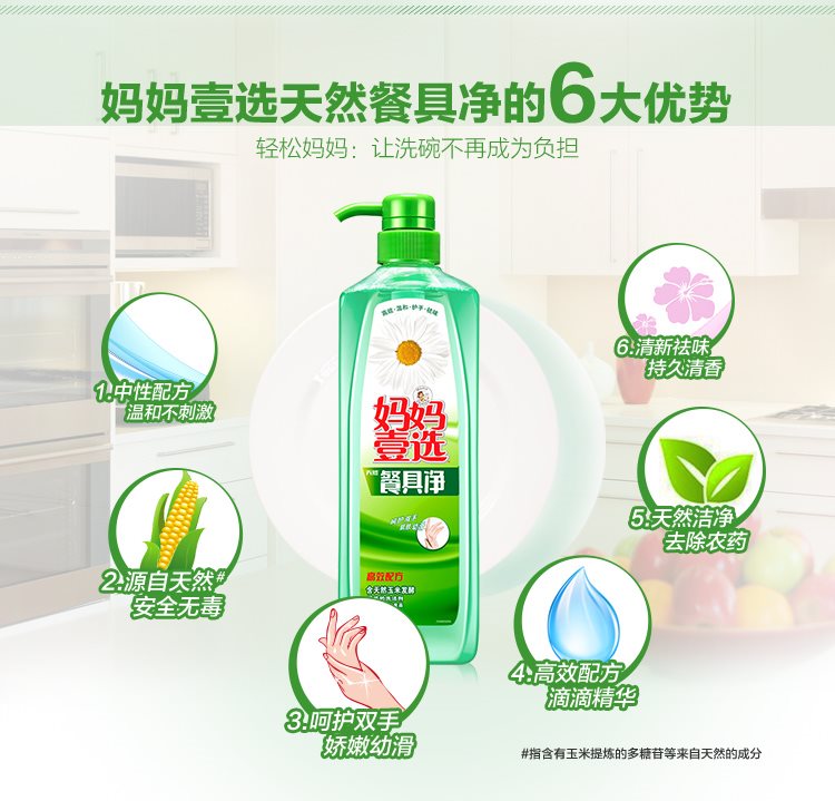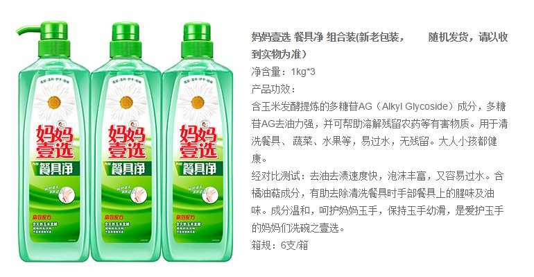 妈妈壹选 餐具净1kg 3支装洗洁精清洗剂