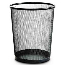 得力9190 稳固高品质铁网圆纸篓/垃圾桶 中号 黑色