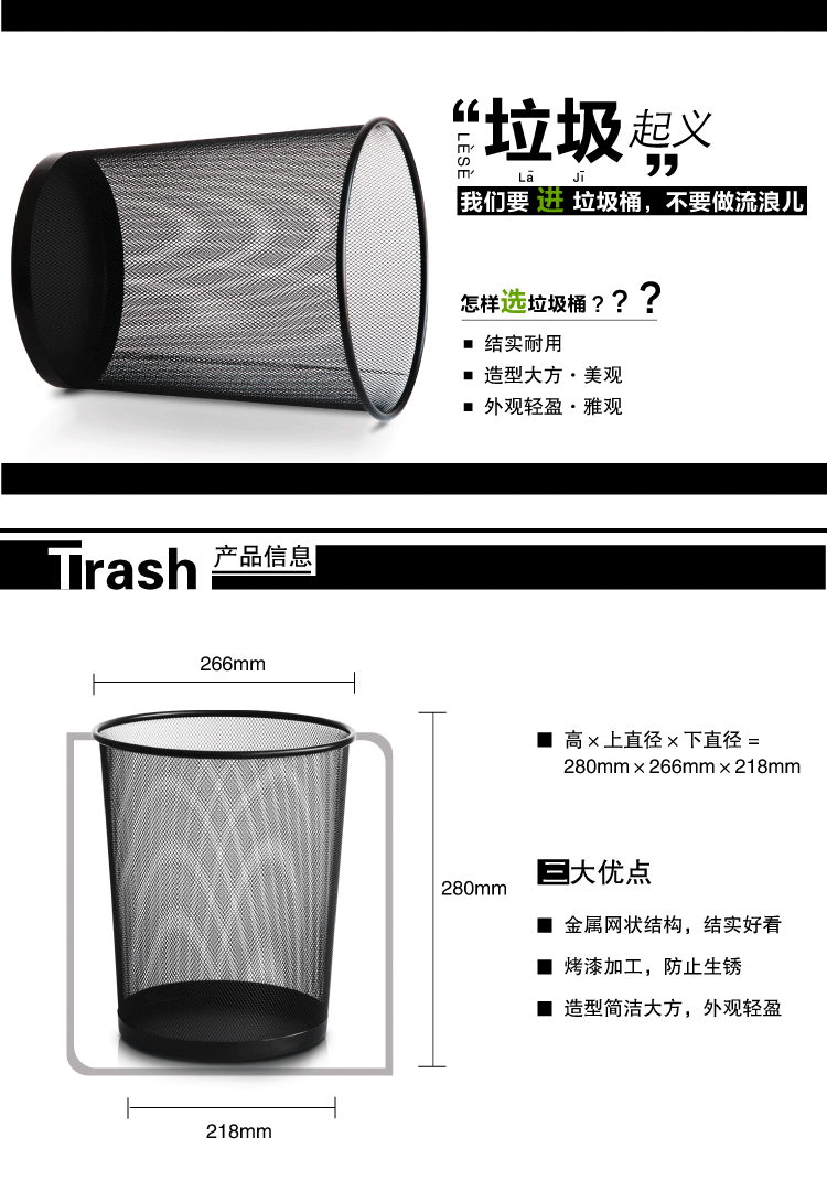 规格:266×218×280mm ;颜色:黑色;材质:金属材质